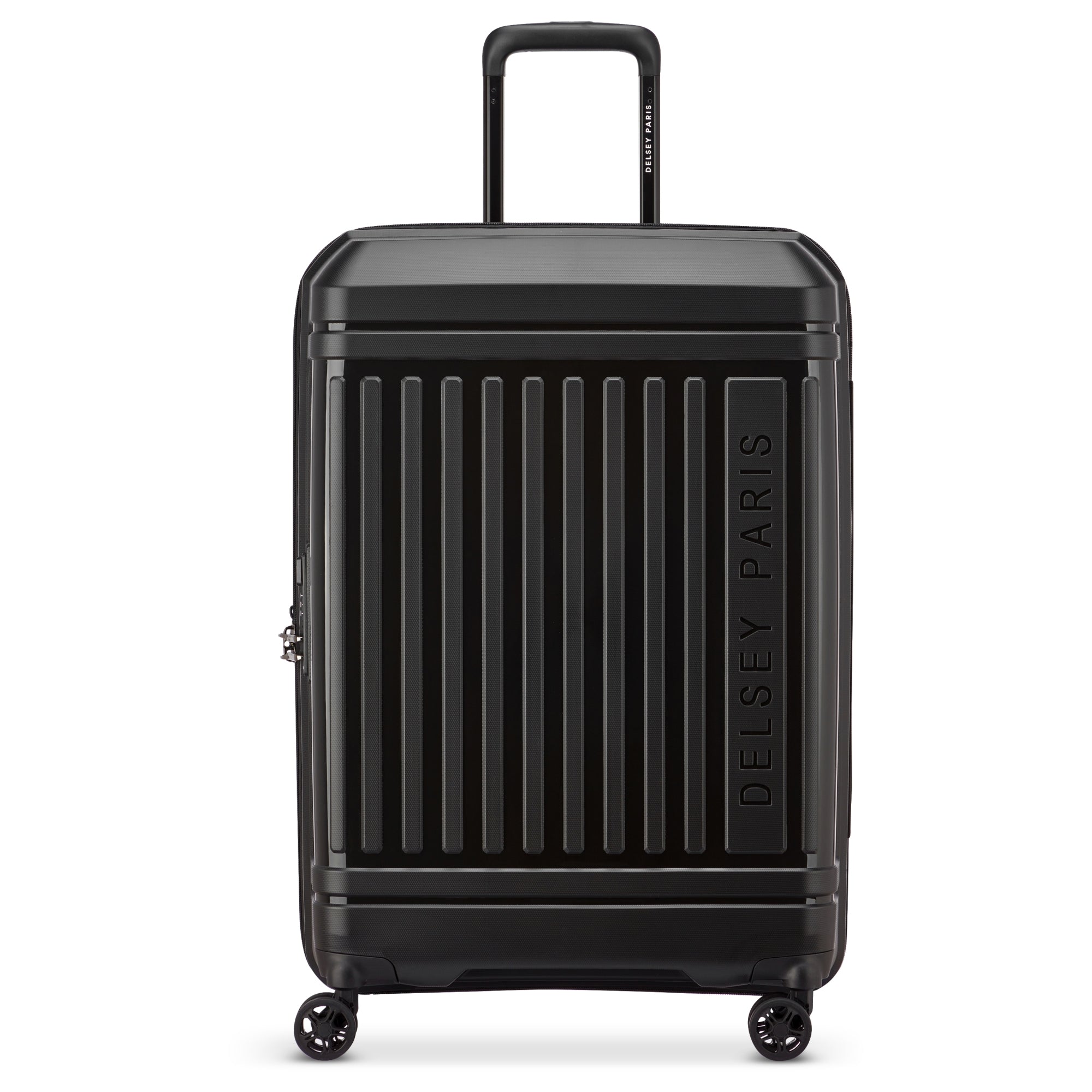Der Delsey Paris Lutece SE ist ein funktionaler 4-Rollen Trolley in klassischem Schwarz, der mit seiner kompakten Größe von 69 cm ideal für Reisen mittlerer Dauer geeignet ist.