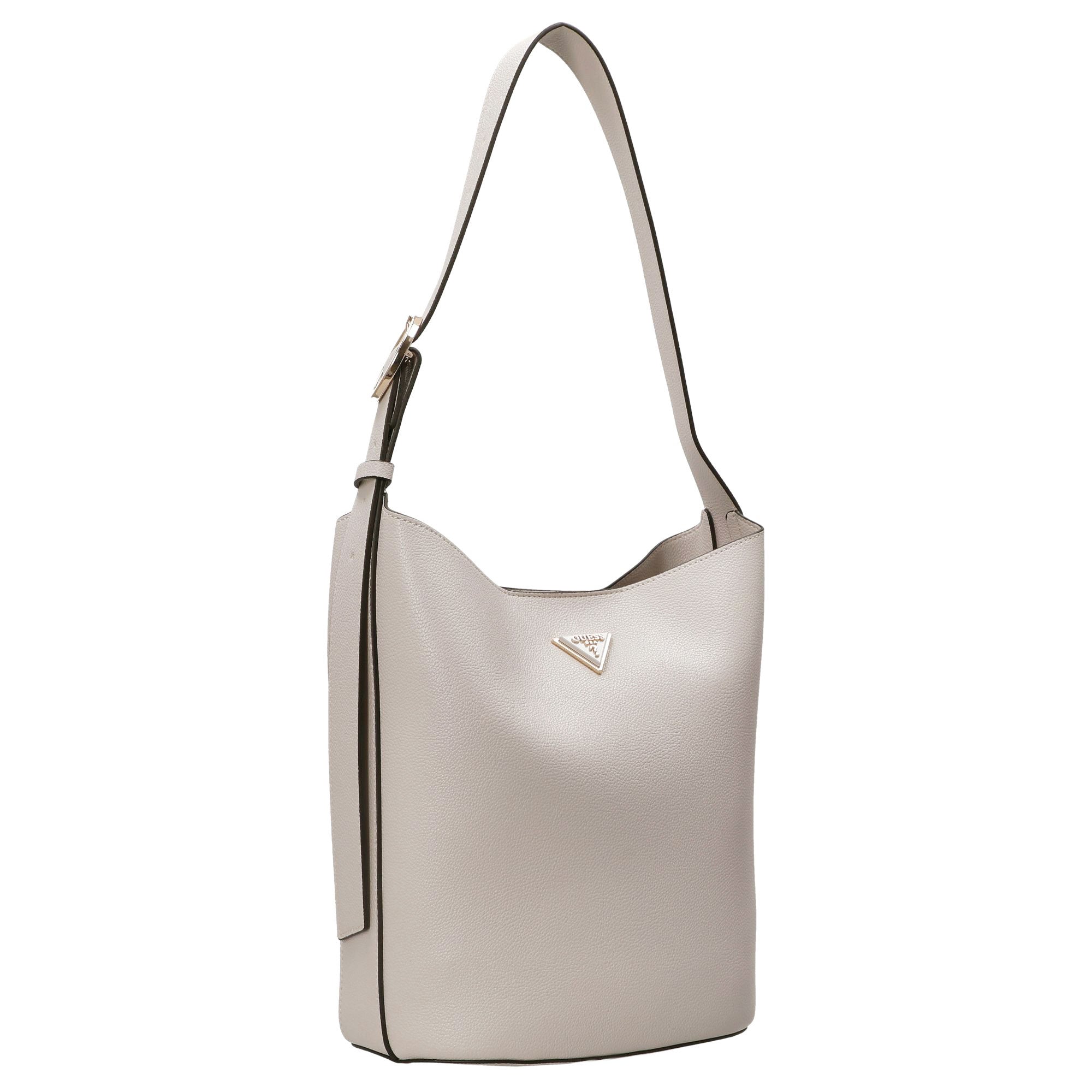 Die Guess Meridian II Beuteltasche in elegantem Ivory überzeugt durch ihr stilvolles Design und die hochwertige Verarbeitung aus robustem Polyurethan. Als modische Schultertasche ergänzt sie jeden Look mit einem dezenten, femininen Charme.