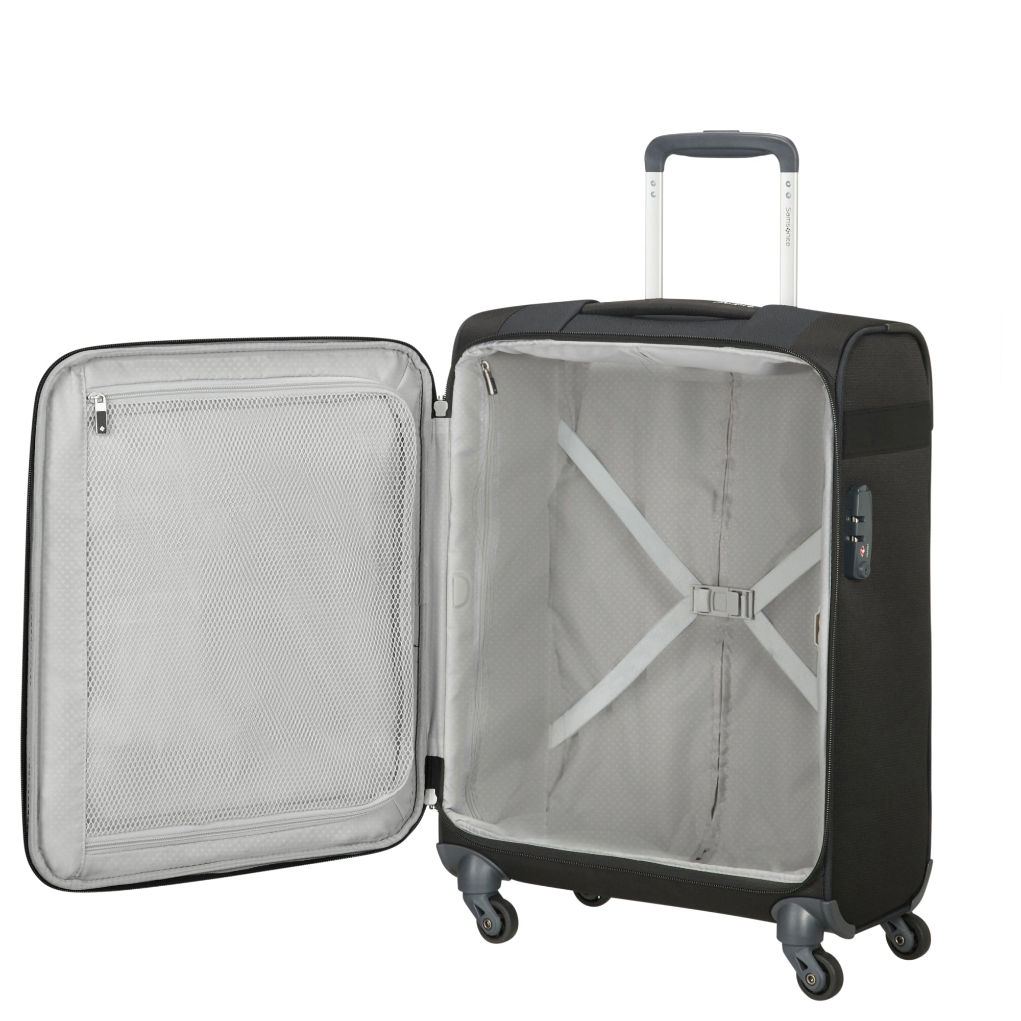 Der Samsonite Citybeat 4-Rollen-Trolley in elegantem Schwarz ist ein kompakter Begleiter für anspruchsvolle Reisende, die Wert auf Funktionalität und Sicherheit legen.