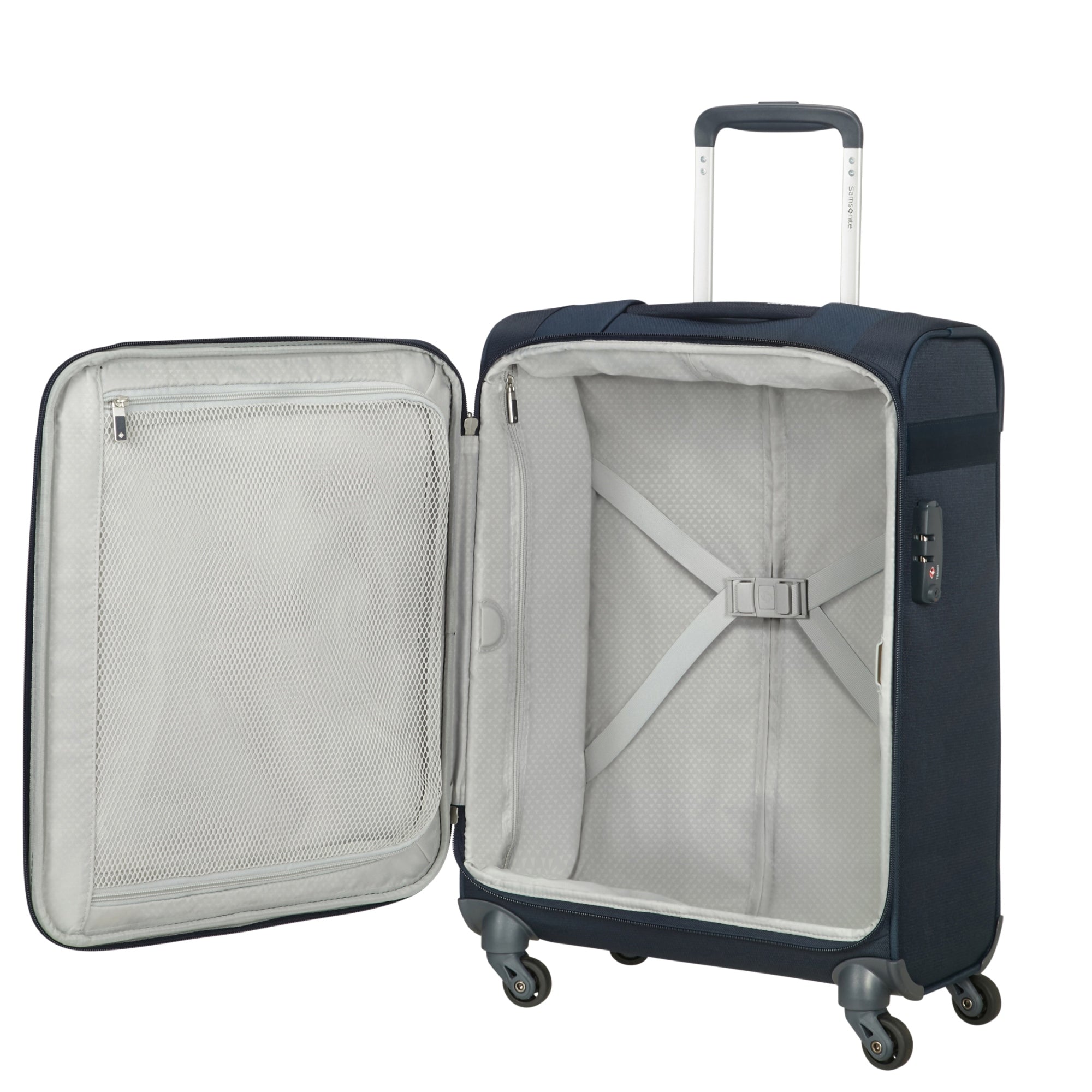 Der Samsonite Citybeat 4-Rollen-Trolley in navy blue ist ein kompakter Handgepäckkoffer, der durch seine robuste Bauweise und funktionale Ausstattung überzeugt.