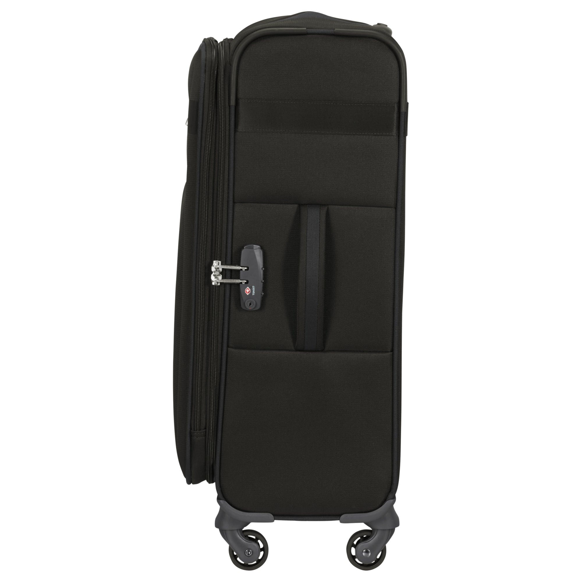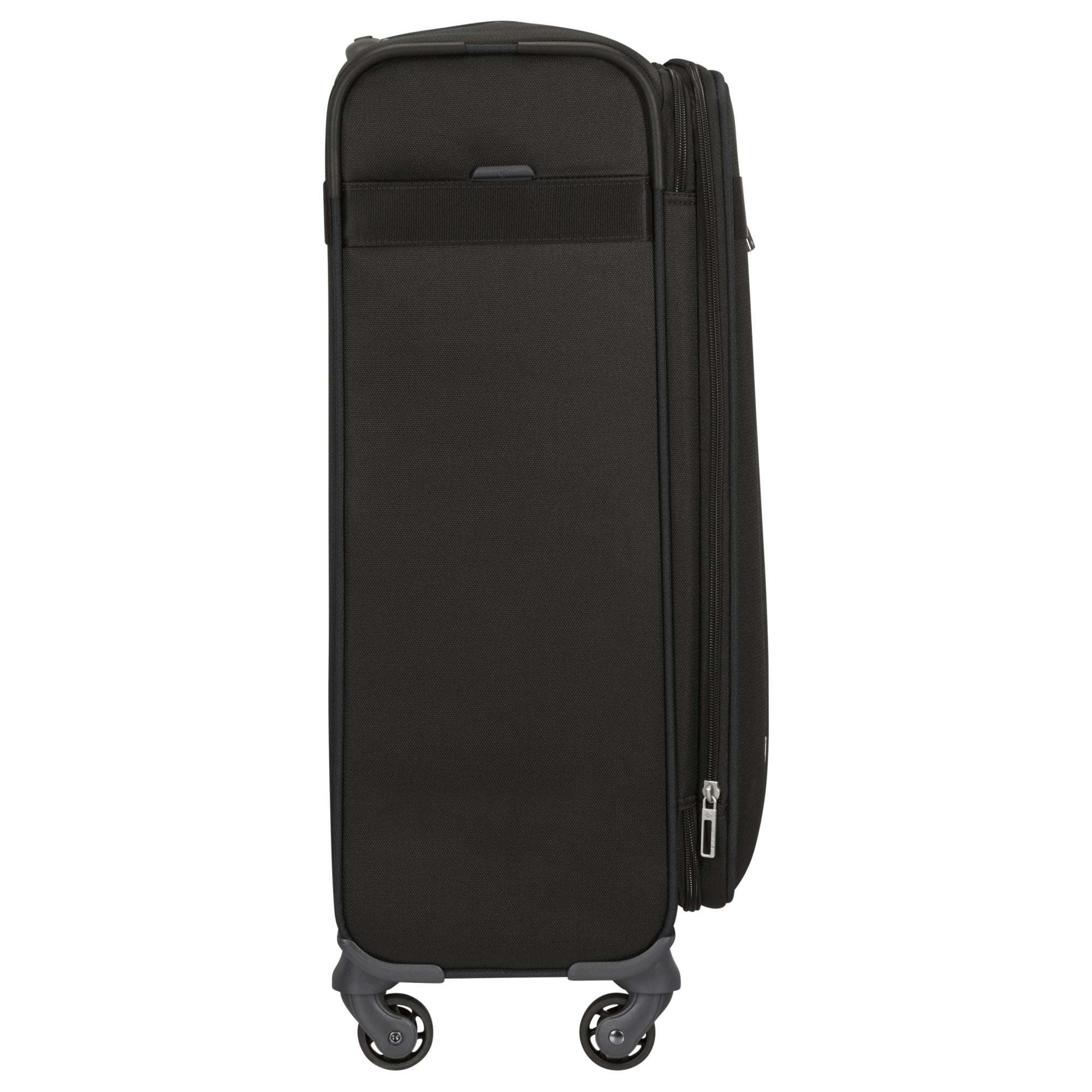 Der Samsonite Citybeat 4-Rollen-Trolley in elegantem Schwarz ist ein technisch durchdachter Begleiter für anspruchsvolle Reisende. Mit einer Höhe von 66 cm und einem Volumen von 67 Litern bietet er ausreichend Platz bei einem Gewicht von nur 2,7 Kilogramm.