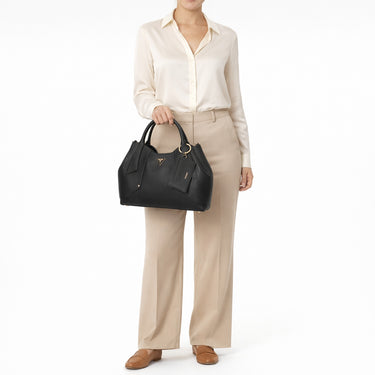 This black handbag from GUESS combines stylish details with functional design and is a versatile companion for fashionable women who value comfort and elegance.