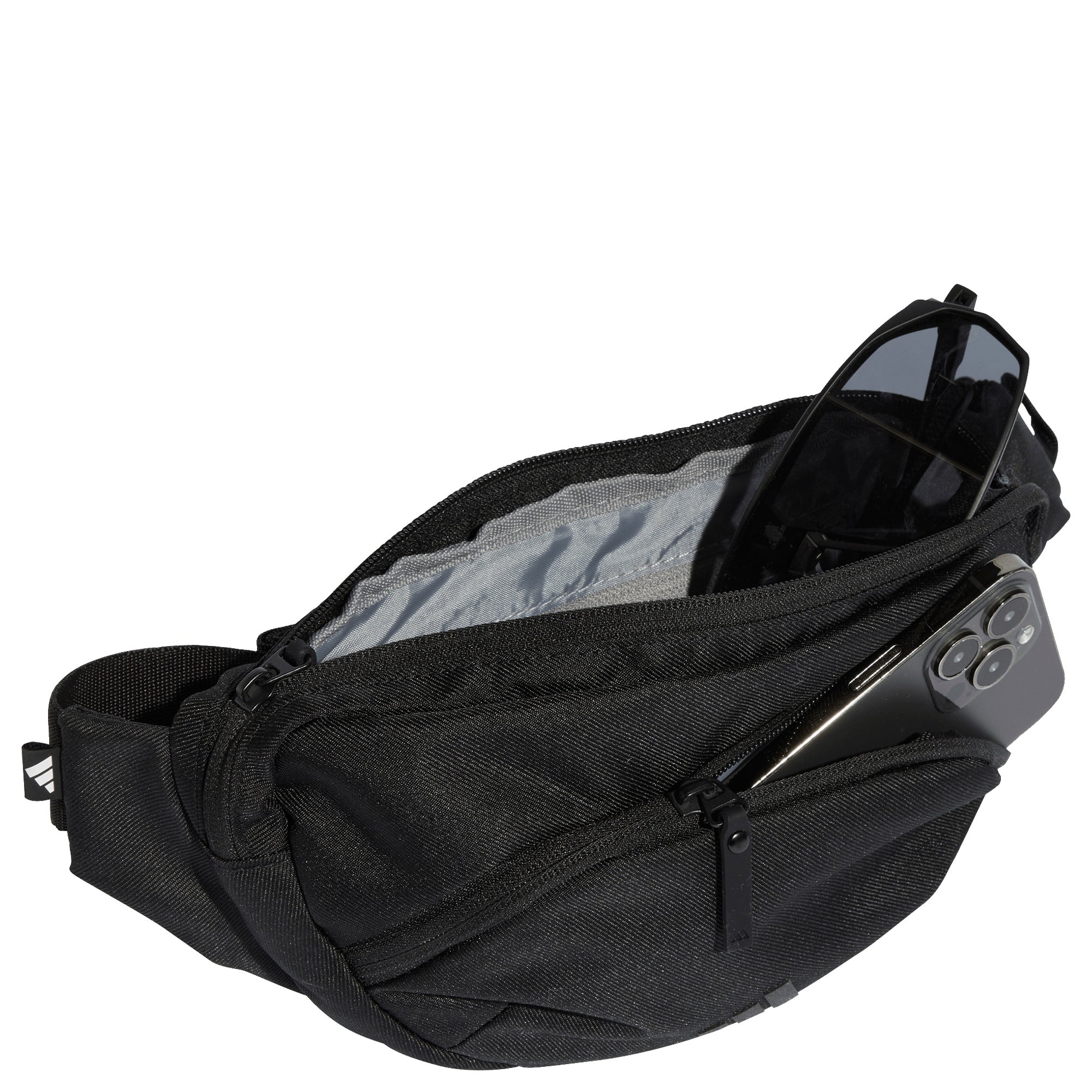 - Détails – une fermeture éclair sécurise les compartiments principaux, tandis que le logo discret à trois bandes souligne élégamment la marque
