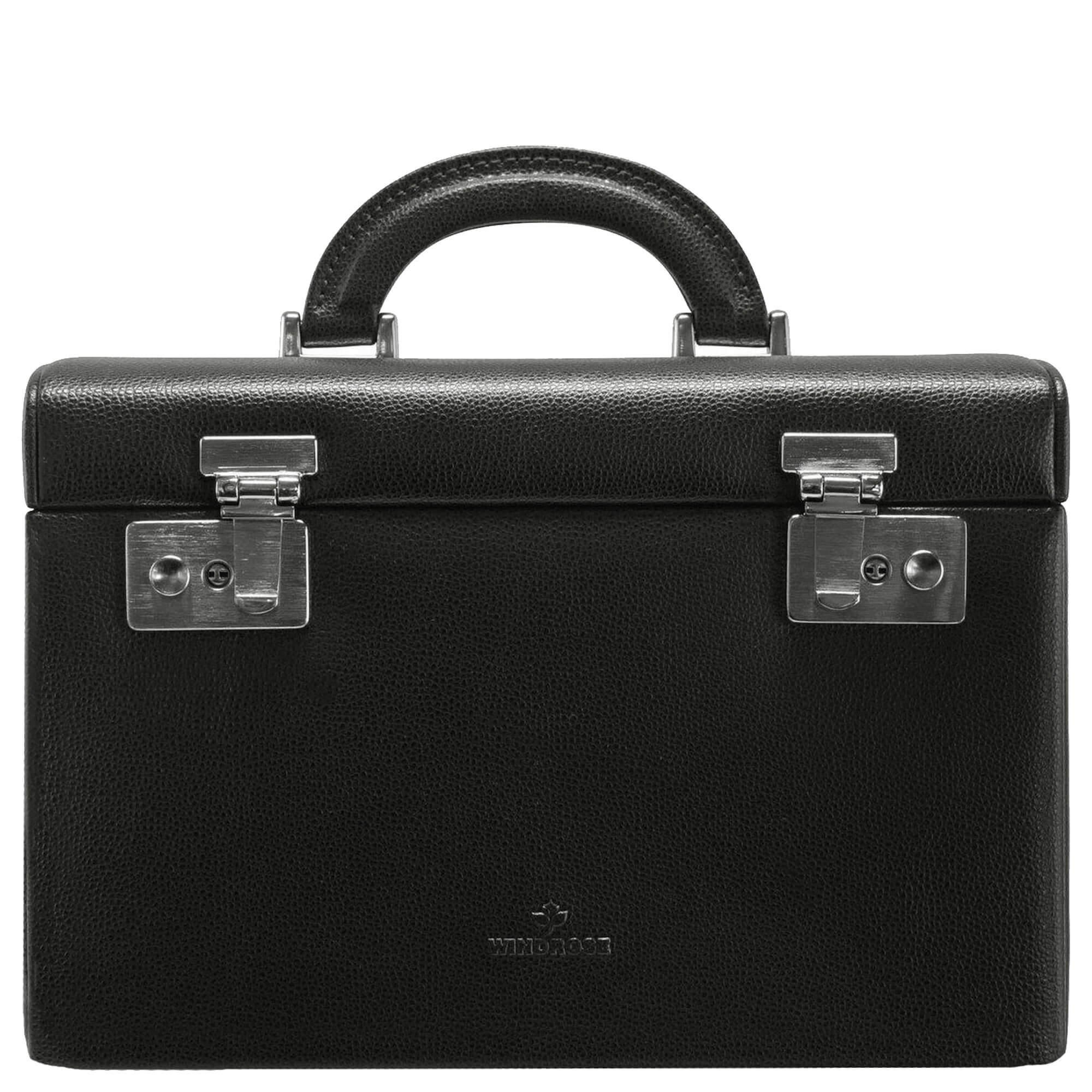 Découvrez la élégante boîte à bijoux Windrose Beluga dans la couleur stylée noire. Cette boîte exquisément conçue en véritable cuir de vachette, avec un motif en relief saisissant, n'est pas seulement un moyen de rangement pratique, mais aussi un véritable accroche-regard pour toute chambre ou dressing.