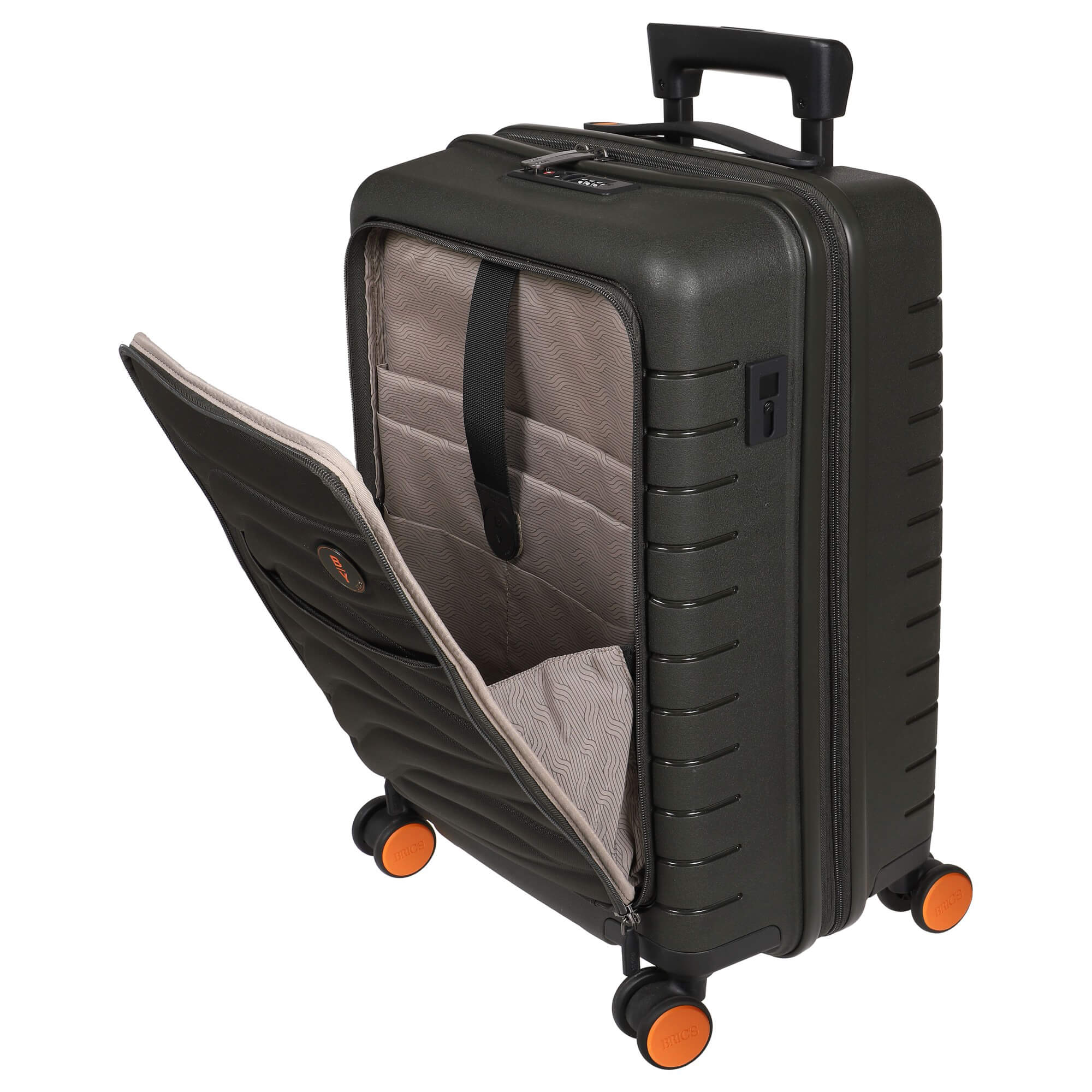 Brics BY Ulisse - Trolley cabine 4 roulettes avec poche avant 55 cm avec USB (olive)