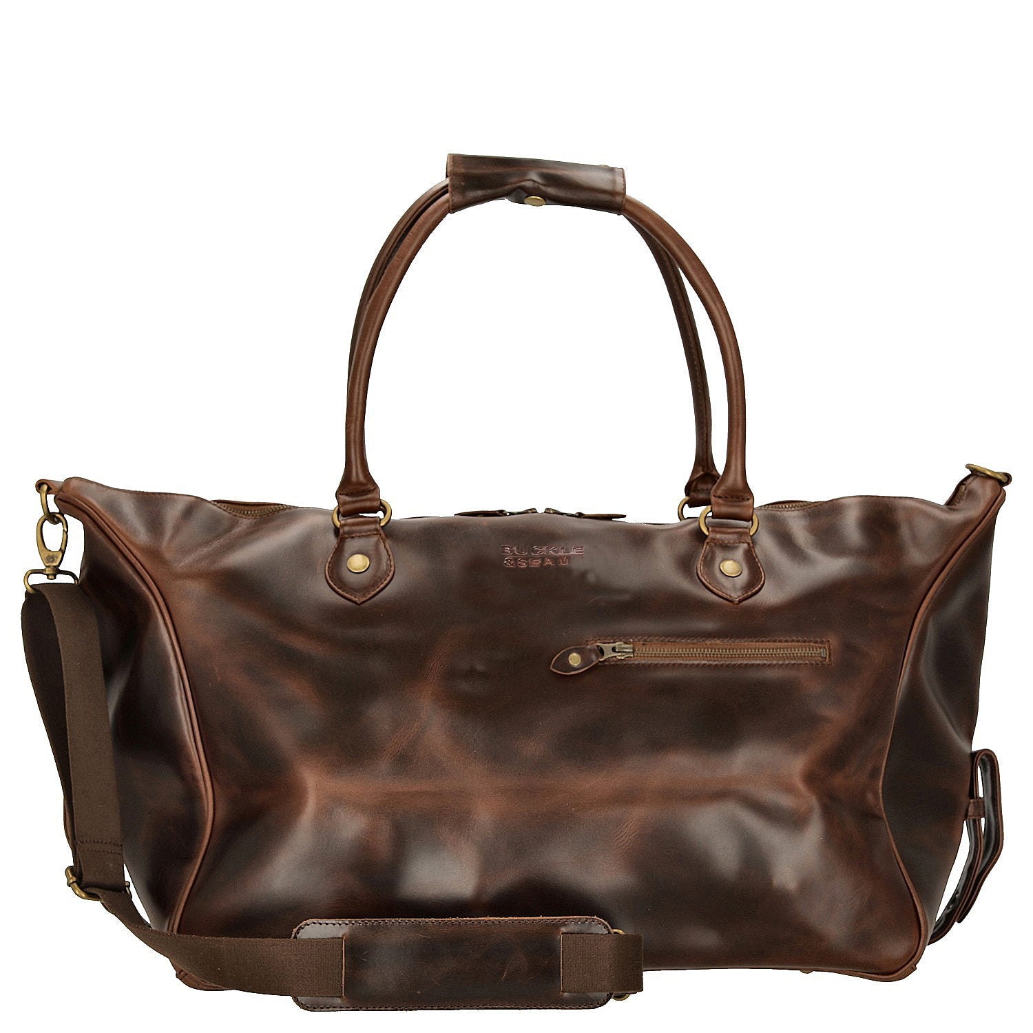 Profitez de la combinaison d'esthétique et de fonctionnalités pratiques avec le Buckle & Seam Linwood Weekender en marron/bleu – le choix parfait pour chaque voyage.