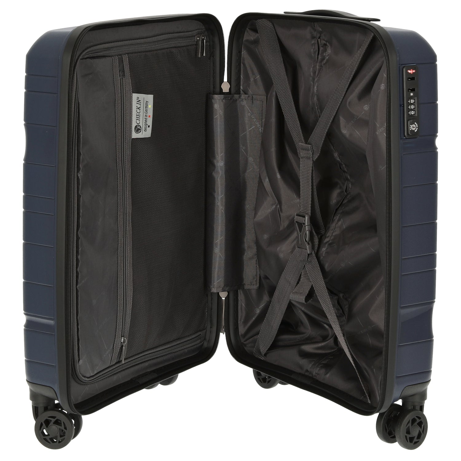 Découvrez le CHECK.IN Memphis - Trolley cabine 4 roulettes 55 cm dans une élégante teinte bleue, idéal pour vos voyages. Ce trolley allie un design exclusif à des fonctionnalités pratiques qui rendent le voyage agréable.