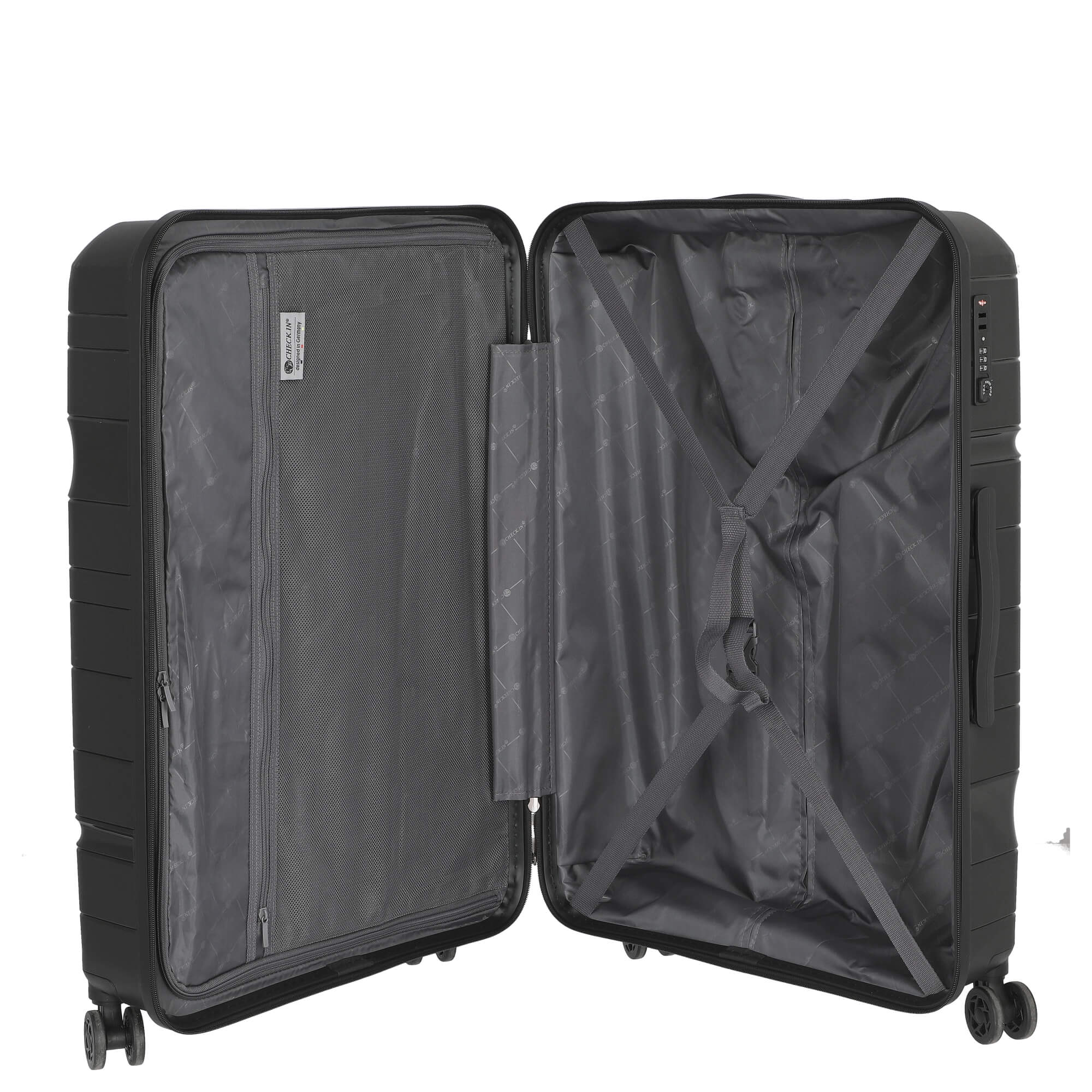 Découvrez le CHECK.IN Memphis Trolley-Set dans la couleur élégante Noir, qui se distingue non seulement par son design exclusif mais aussi par sa fonctionnalité. Cet ensemble de 3 pièces est le compagnon idéal pour chaque voyage et vous offre la combinaison parfaite de style et de praticité.