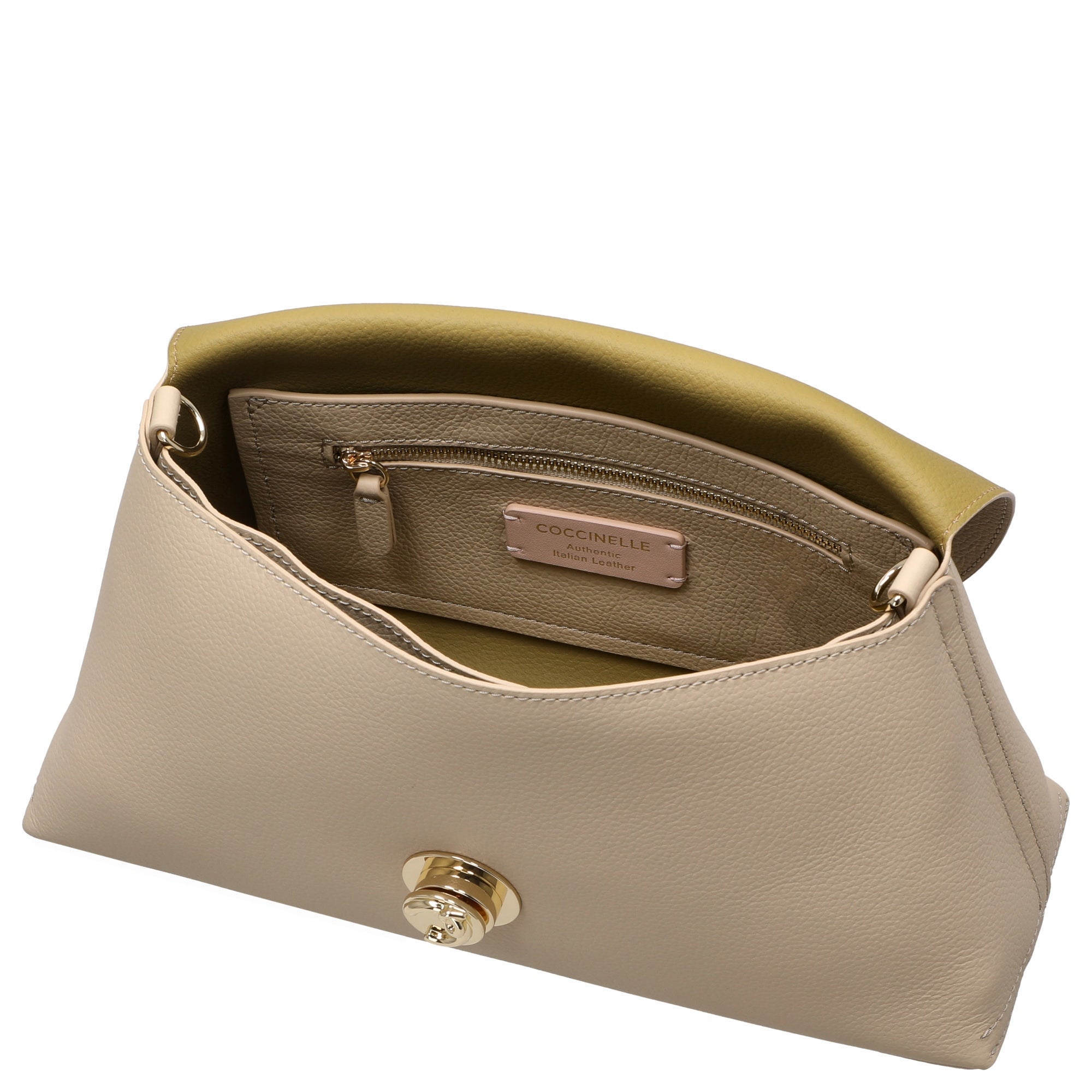 Le sac à bandoulière Coccinelle Nikla dans la combinaison de couleurs élégante sandshe/seagras se distingue par son design raffiné et ses détails de haute qualité, qui séduisent les femmes soucieuses de mode au quotidien comme lors d'occasions particulières.