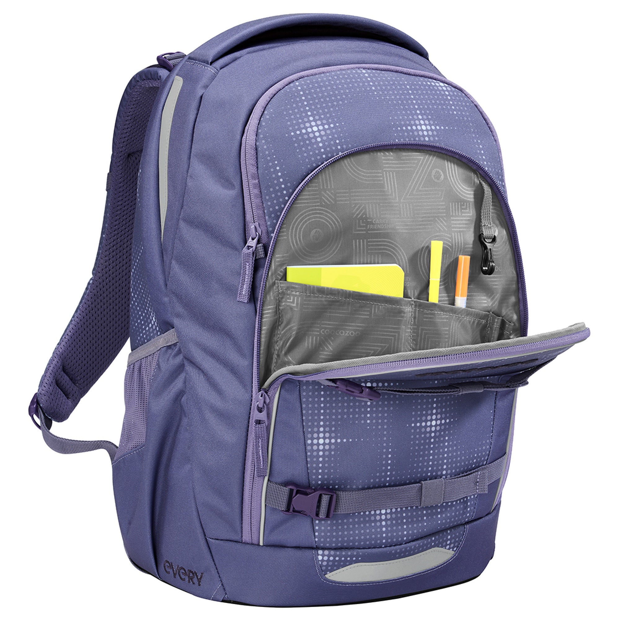 Avec son design moderne et ses fonctionnalités bien pensées, le sac à dos scolaire Coocazoo Every en swirl whirl est le compagnon idéal pour l'école, les loisirs et les aventures. Offrez-vous ce sac à dos élégant qui répond à vos besoins tout en étant à la mode.
