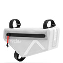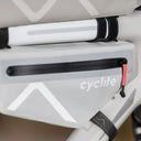 Une sacoche de cadre fonctionnelle au design moderne en gris clair, idéale pour le bikepacking et tous ceux qui comptent sur un équipement fiable en déplacement.