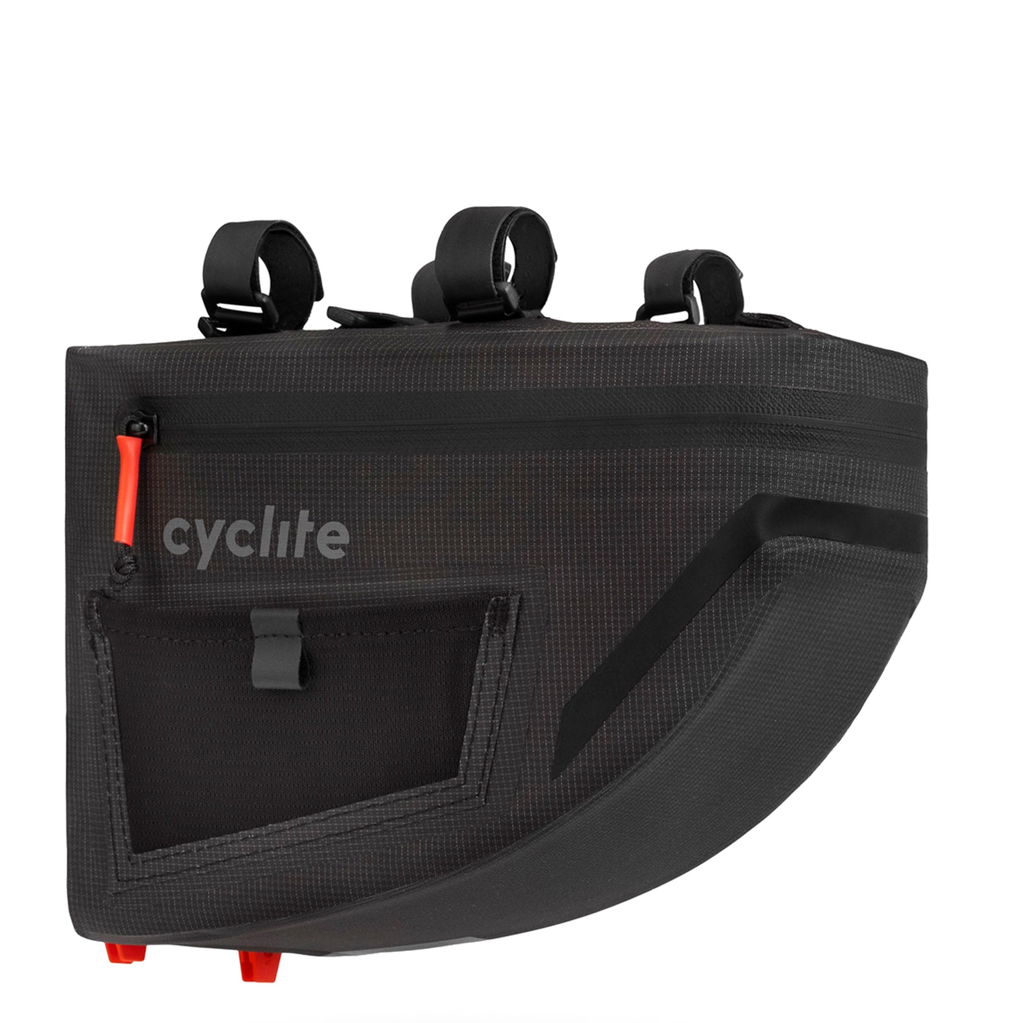 Le sac de guidon Cyclite Handle Bar Aero Bag 02 est une sacoche fonctionnelle de couleur noire, spécialement conçue pour le bikepacking. Avec son design épuré, il améliore l'aérodynamisme tout en augmentant l'espace de rangement sur le guidon du vélo.