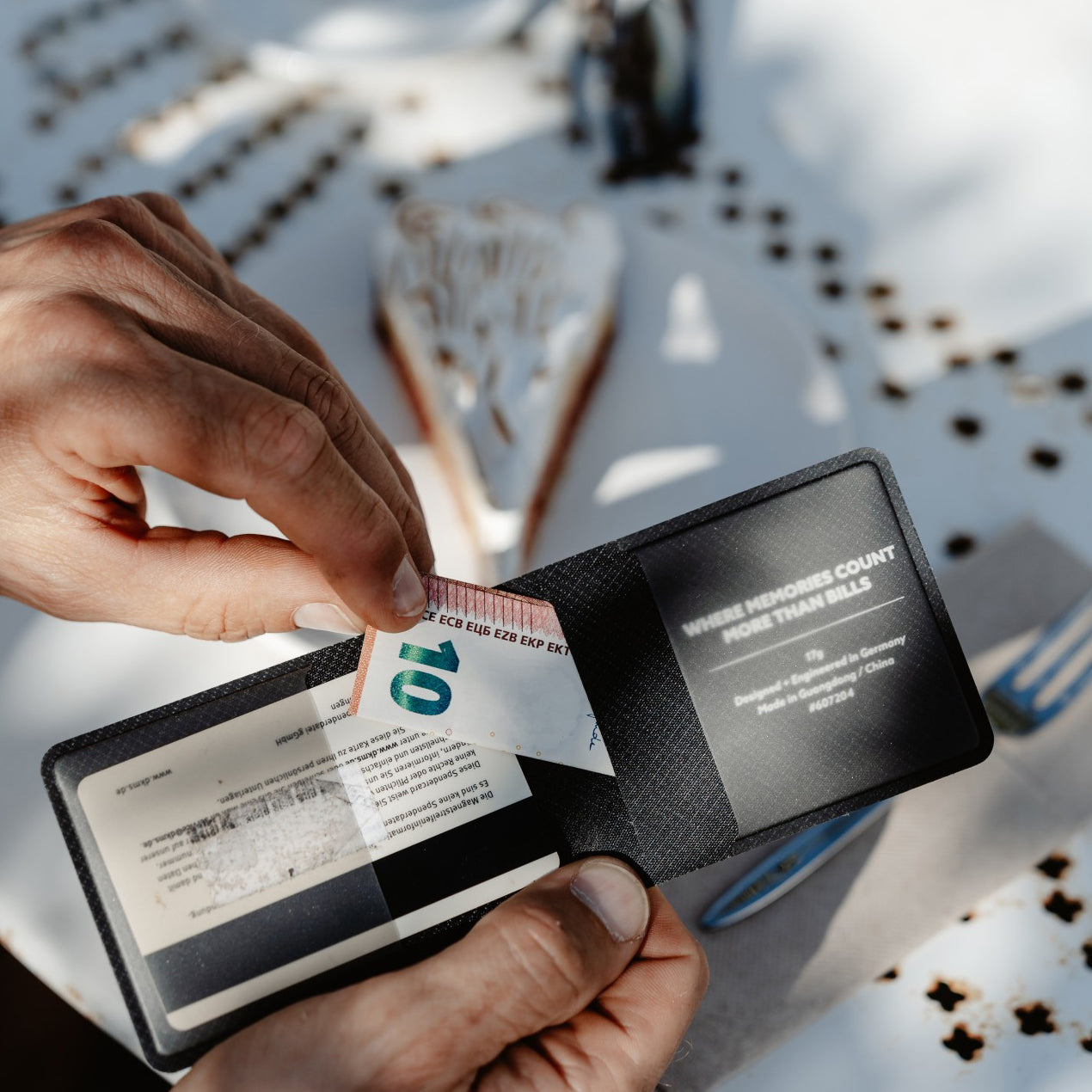 - Capacité pour jusqu'à 8 cartes de crédit ou environ 20 billets pliés