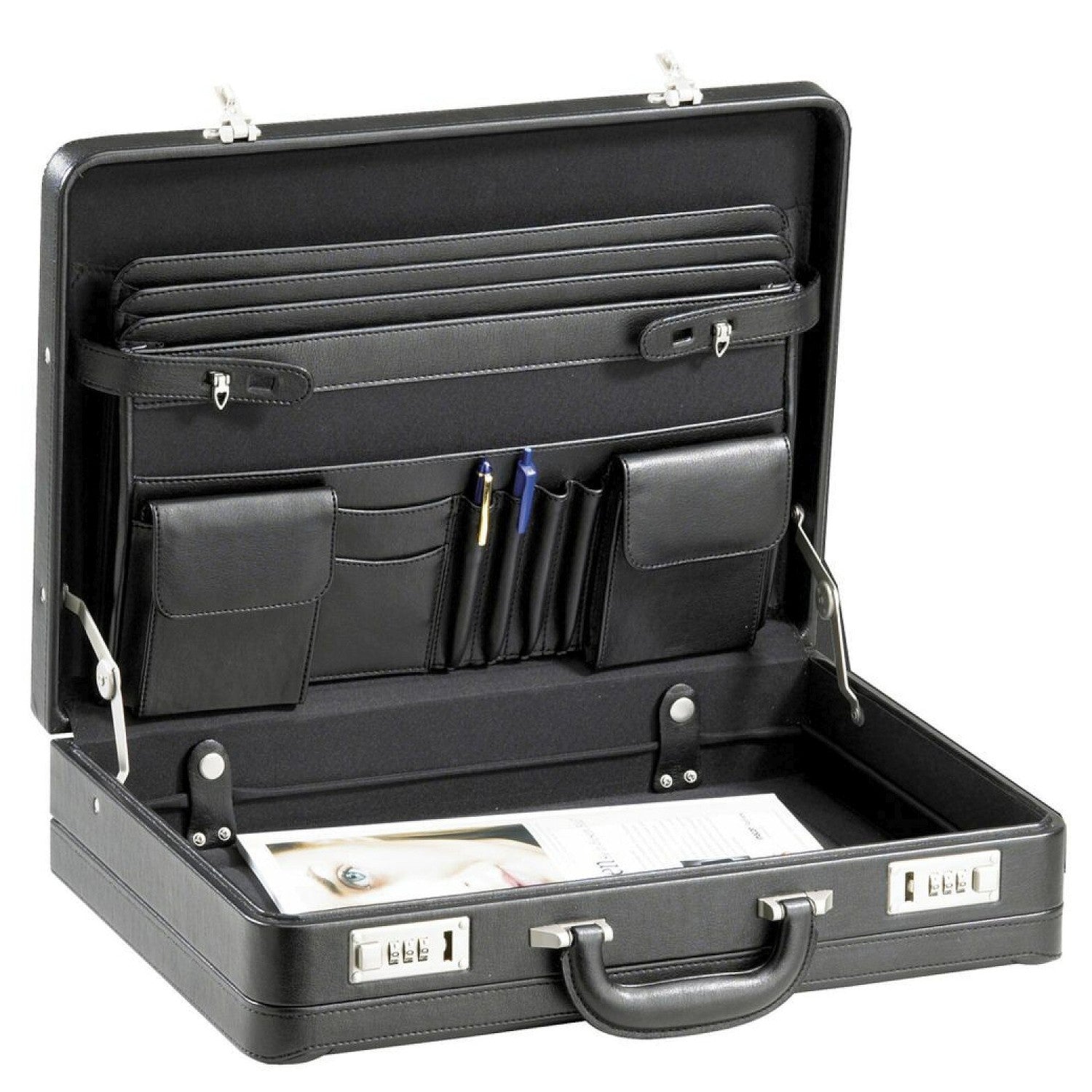 La mallette d'affaires D&N Tradition en noir est le compagnon idéal pour les femmes professionnelles qui accordent de l'importance au style et à l'organisation. Avec un design réfléchi et une construction robuste, cette mallette offre non seulement un espace sécurisé pour vos documents, mais aussi la possibilité de l'adapter selon vos besoins.