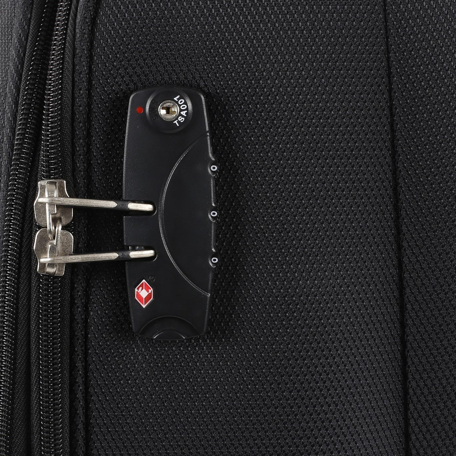 Ce trolley est équipé d'une fermeture éclair à deux voies, qui assure une manipulation sécurisée et simple. Le verrou TSA intégré garantit une protection supplémentaire pour vos objets de valeur, tandis que les bandes de maintien veillent à ce que tout reste en place.