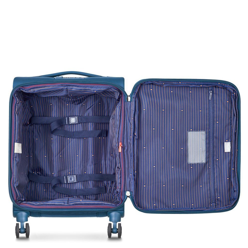 Avec ses quatre roulettes doubles mobiles et silencieuses, vous glisserez sans effort à travers les aéroports et lors de vos voyages. Le Delsey Montmatre Air 2.0 n'est pas seulement fonctionnel, mais aussi un accessoire élégant qui enrichit vos voyages. Profitez du confort et de la sécurité que ce trolley vous offre !