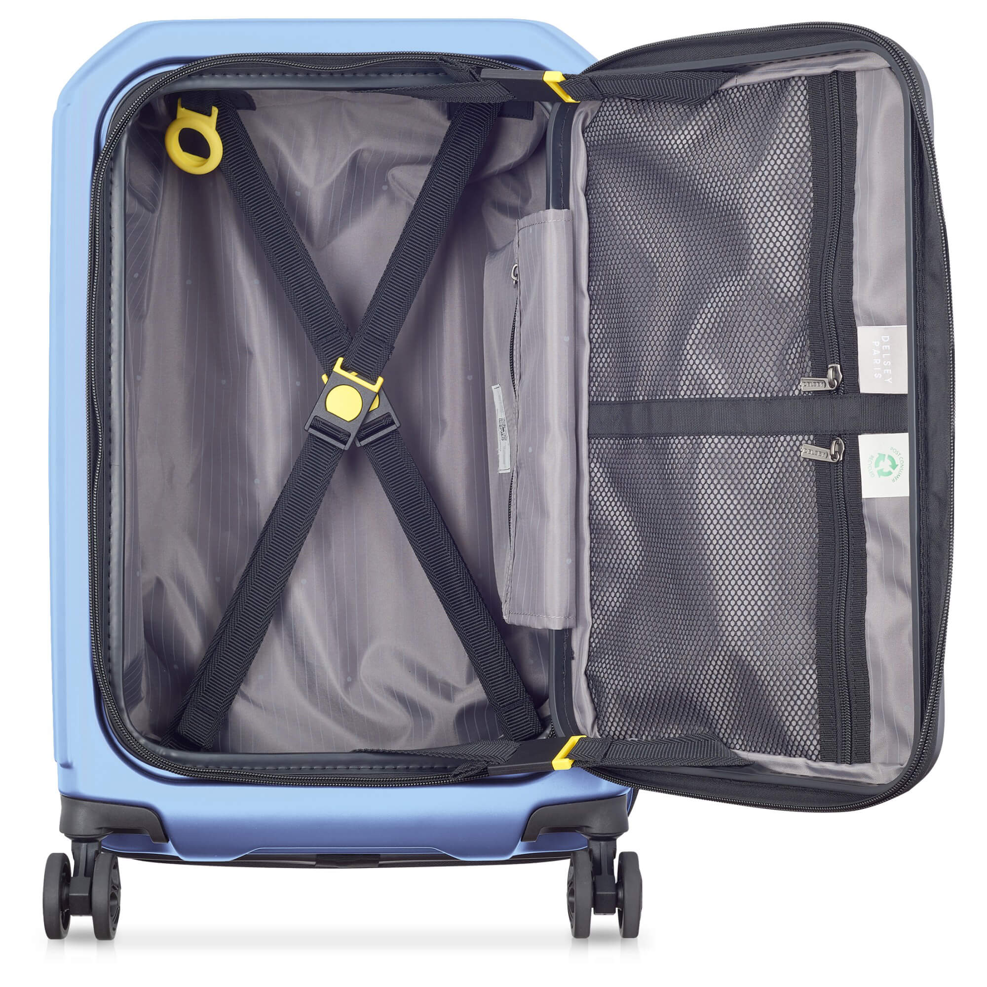 Découvrez le Delsey Paris Securitime Trolley de cabine dans la couleur élégante bleu lavande, qui non seulement a fière allure, mais impressionne également par sa fonctionnalité. Ce trolley est équipé de la fermeture éclair innovante SECURITECH® 3, qui est trois fois plus résistante à l'ouverture non autorisée que les fermetures éclair classiques. Cela garantit un maximum de sécurité pour vos bagages, peu importe où votre voyage vous mène.
