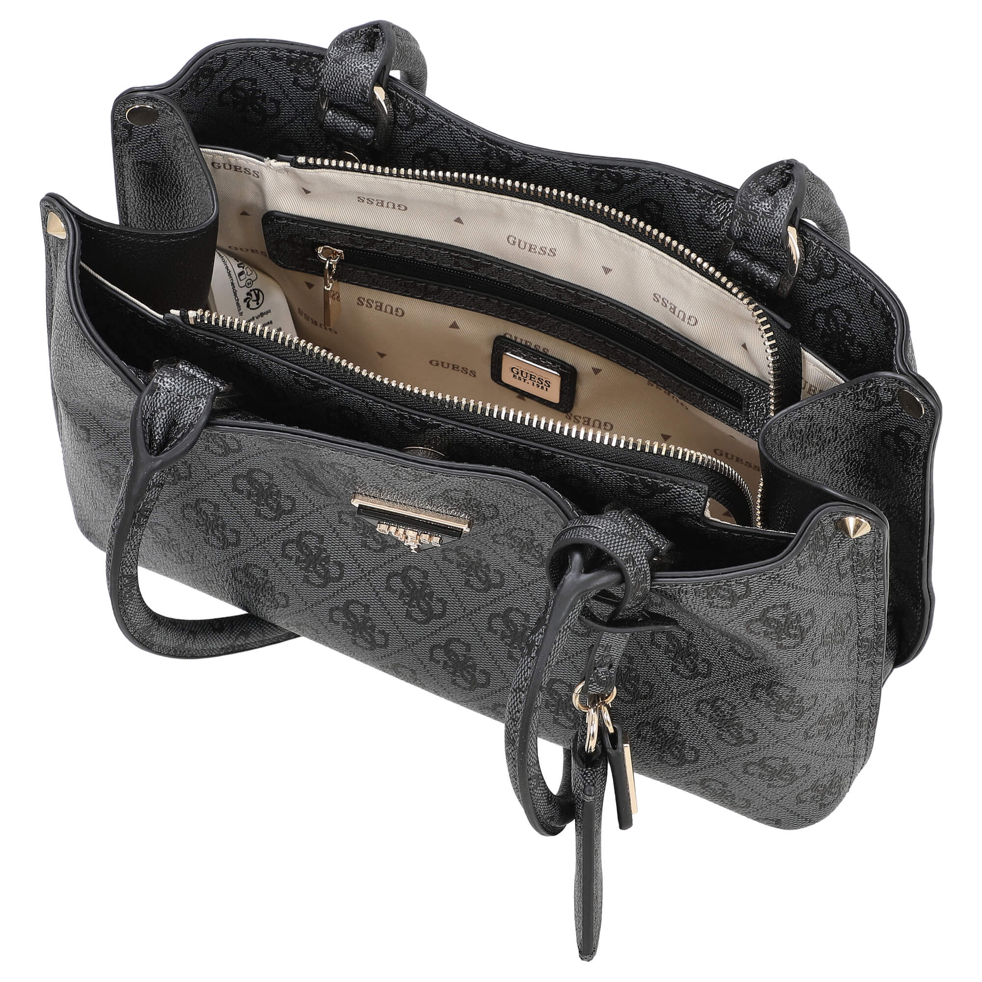- Logo Guess marquant : Le logo Guess métallique sur le devant apporte une touche moderne et souligne l'exclusivité du sac.