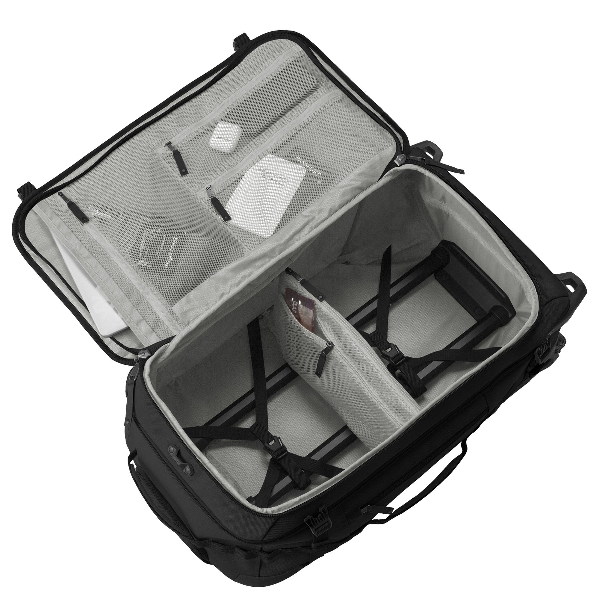 - Différents pochettes zippées dans le couvercle pour un accès rapide
