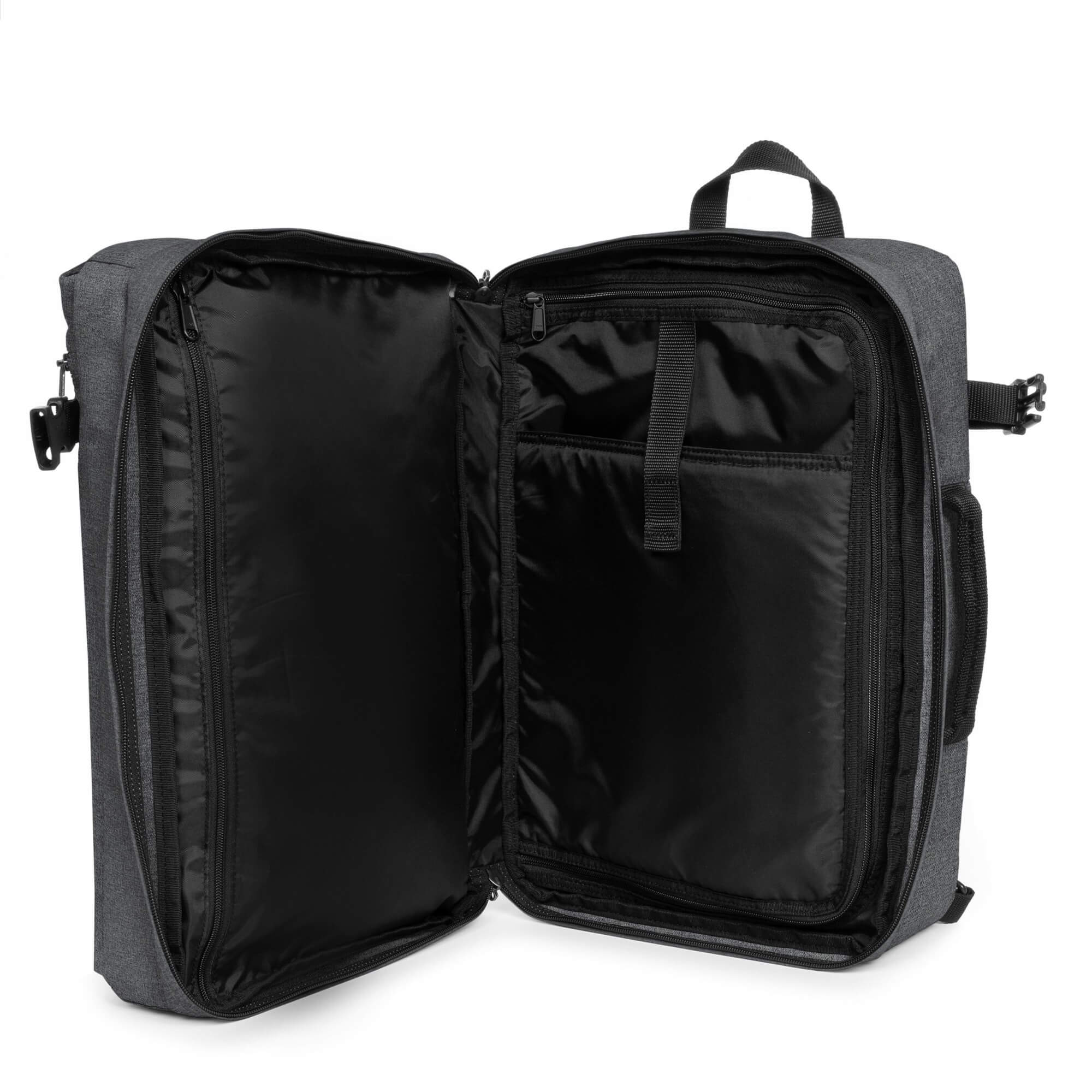 Le dos rembourré offre un confort supplémentaire, tandis que la sangle de transport rétractable élargit les possibilités d'utilisation. Avec le Eastpak Transit R Pack en denim noir, vous voyagez avec style et praticité, que ce soit pour un court séjour ou le trajet quotidien vers le travail.