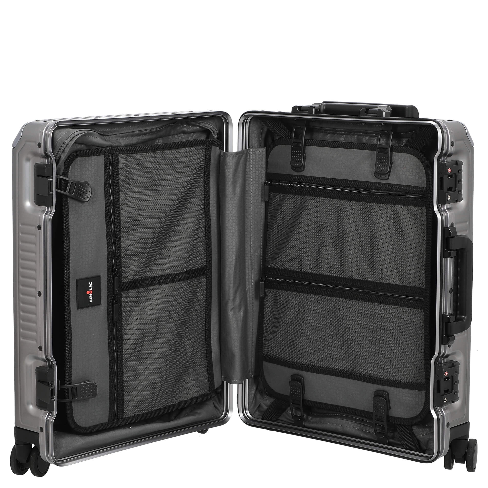 Echolac Shogun Classic - Trolley 4 roulettes S 56 cm en gris foncé est la combinaison parfaite de style et de fonctionnalité pour les voyageurs exigeants. Ce trolley en aluminium de qualité aéronautique offre non seulement une durabilité impressionnante, mais aussi un espace de rangement bien pensé qui enrichit vos expériences de voyage.