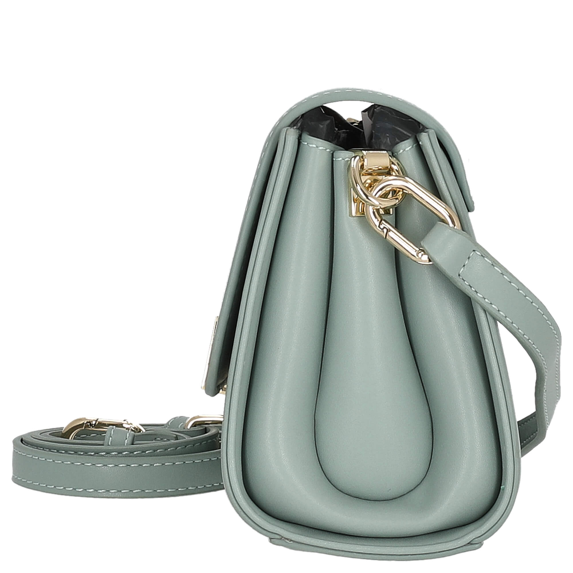 Le sac bandoulière se distingue par sa fermeture unique en forme de déclaration, qui est non seulement un véritable accroche-regard, mais assure également la sécurité. Le sac se ferme avec un rabat et un fermoir à pression, garantissant que vos essentiels sont toujours bien protégés.