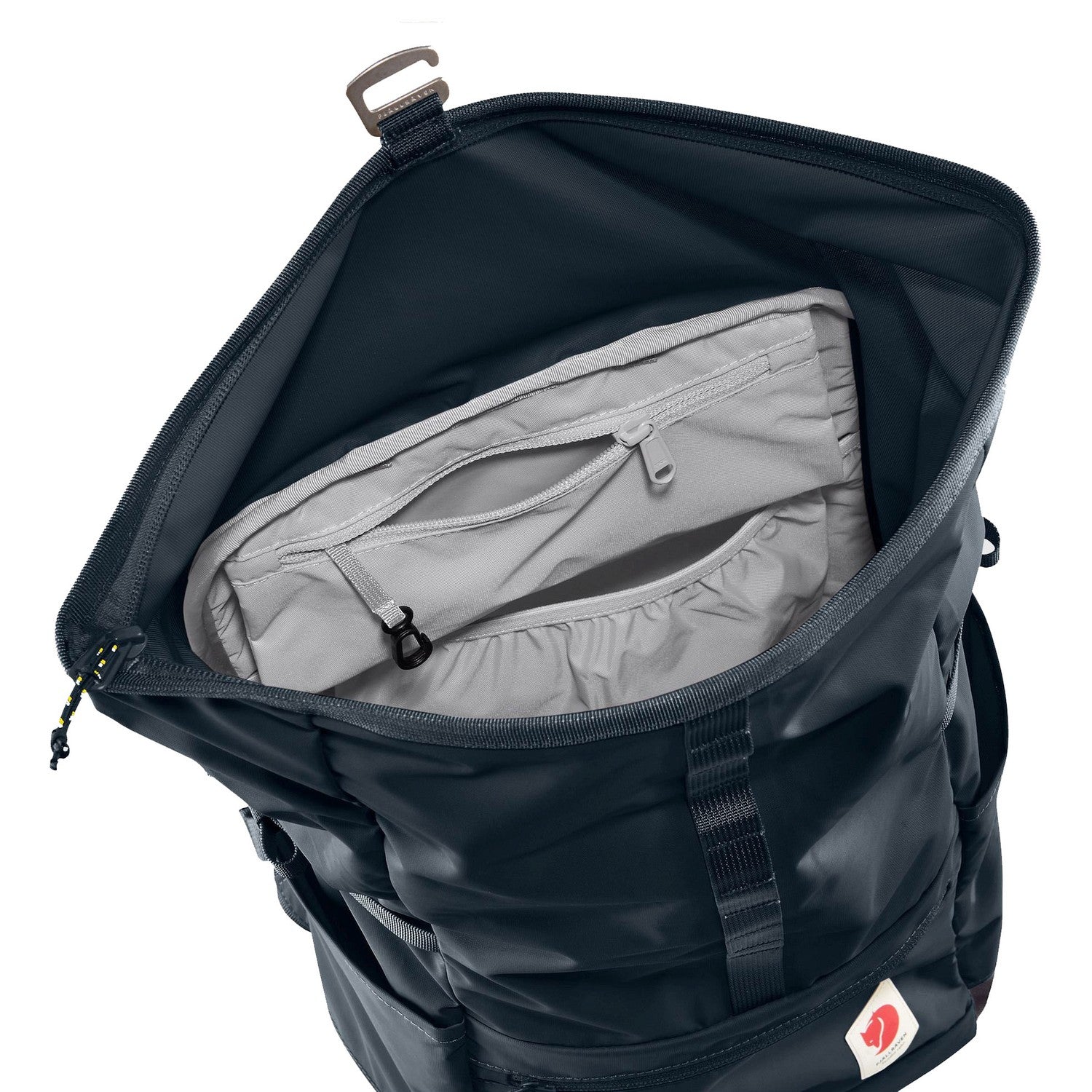Le Foldsack est équipé d'un compartiment supérieur pliable qui se ferme par une fermeture éclair et une boucle en métal. Cela vous permet d'augmenter le volume du compartiment principal selon vos besoins. La spacieuse poche avant avec fermeture éclair ainsi que deux poches latérales pratiques garantissent que les petits objets sont toujours à portée de main.