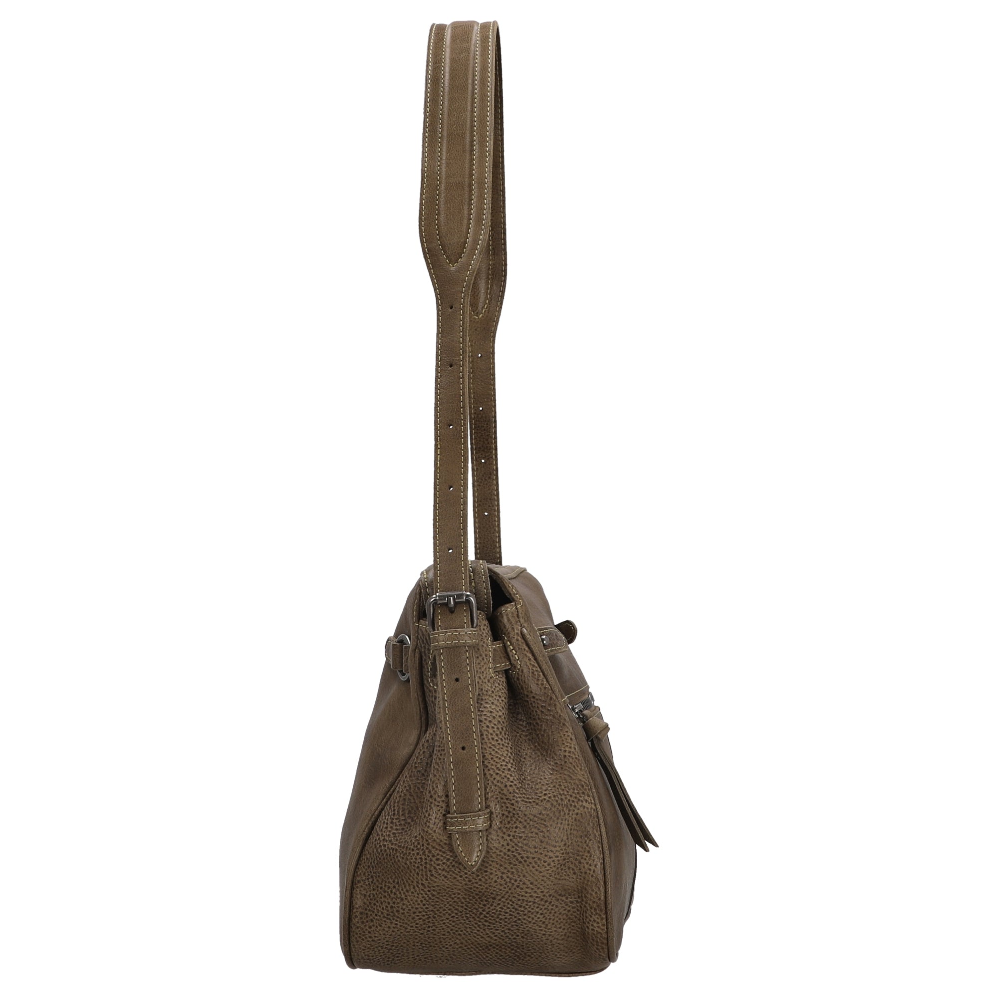 Un sac à bandoulière élégant de FREDsBRUDER en khaki boueux, qui séduit les femmes à la mode par son design intemporel et sa finition de haute qualité.