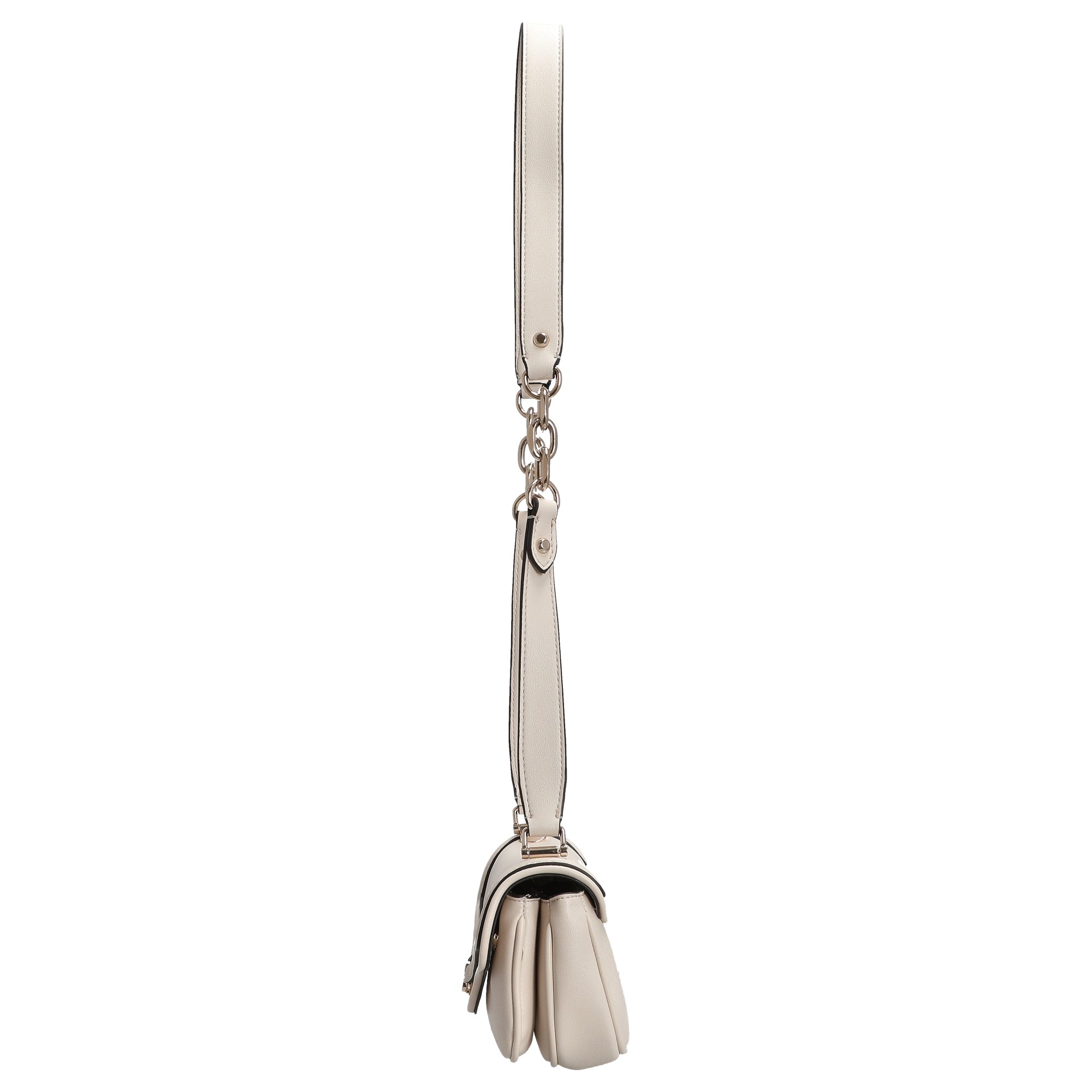 Le sac bandoulière Guess Dea en élégant blanc cassé apporte une touche de mode au quotidien comme lors d'occasions spéciales. Le cuir synthétique de haute qualité lui confère un aspect lisse, facile à assortir.
