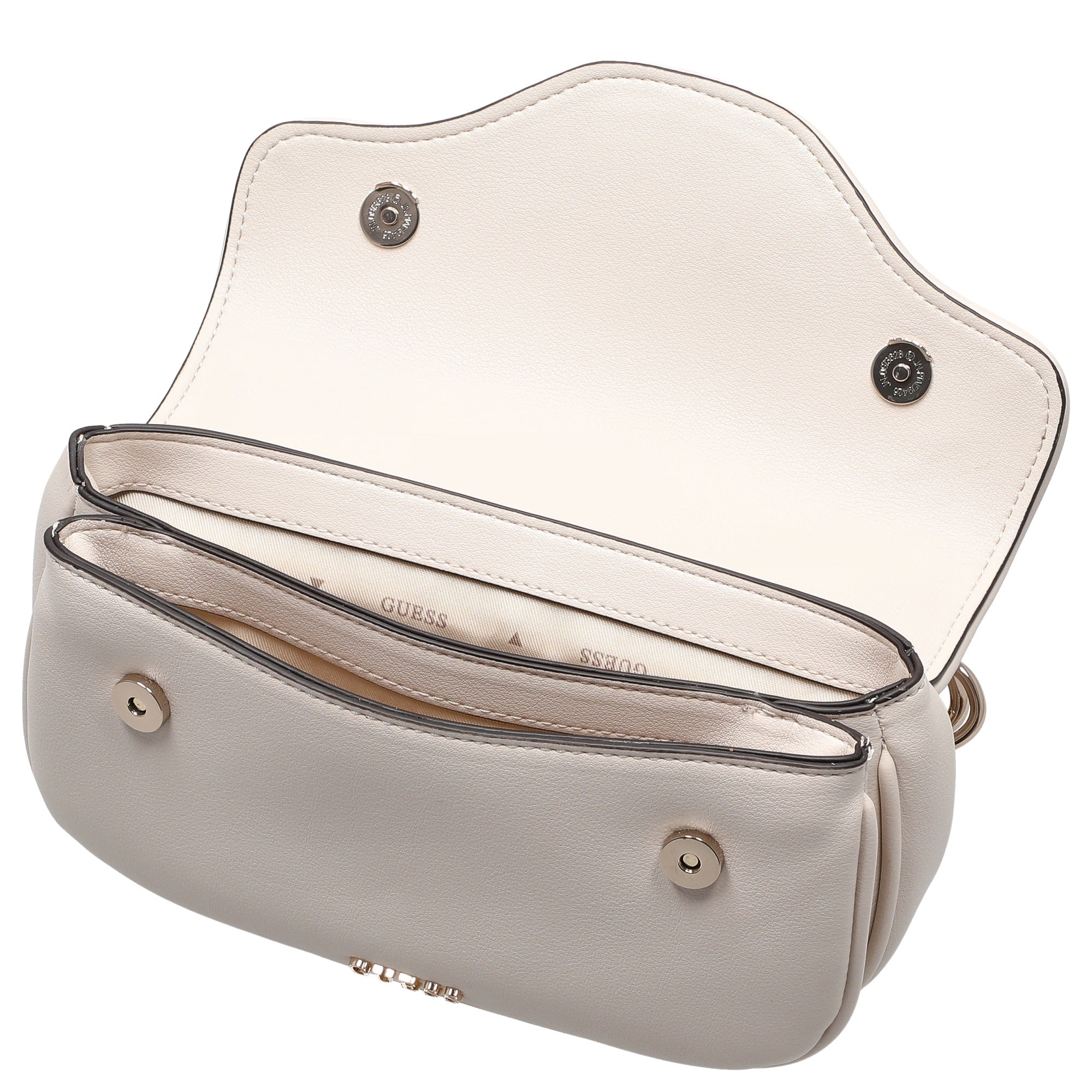 Que ce soit pour une promenade en ville ou une tenue de soirée, le sac bandoulière Guess Dea en blanc cassé est un accessoire intemporel qui complète chaque look avec charme.