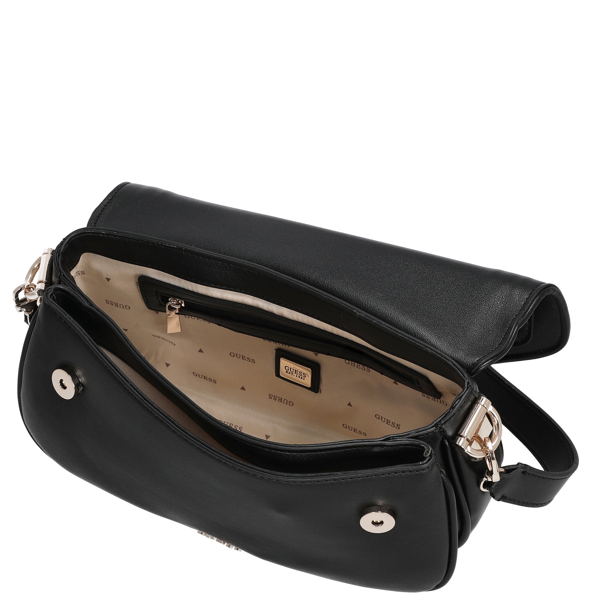 Que ce soit au bureau, lors d’une balade en ville ou pour une soirée entre amis – le sac bandoulière Guess Dea en similicuir noir est un compagnon polyvalent qui complète avec style toutes vos tenues.