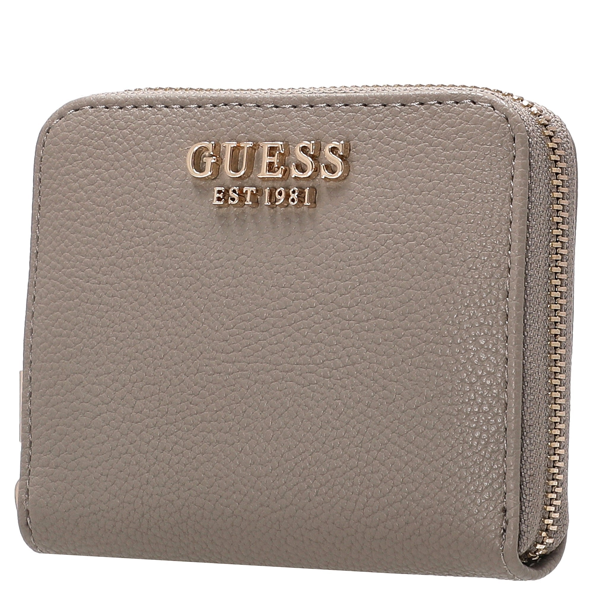 Le portefeuille Guess Laurel II SLG Small Zip Around en noir séduit par un design élégant et des détails pratiques. Le cuir synthétique fin avec une texture discrète confère au portefeuille une apparence de haute qualité, élégamment complétée par des accents métalliques couleur or clair.
