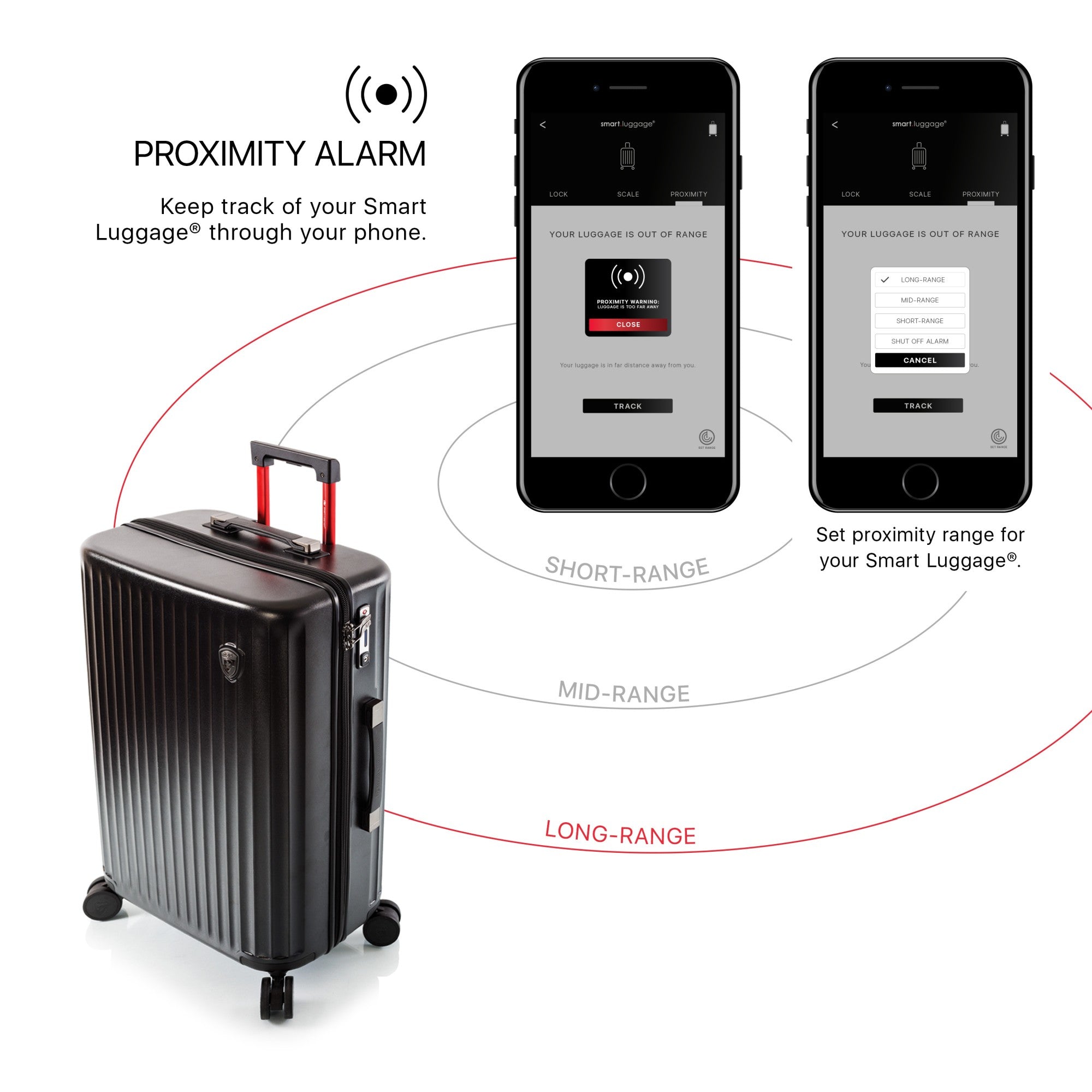 - Alarme de proximité : Vous alerte lorsque vous vous éloignez de vos bagages