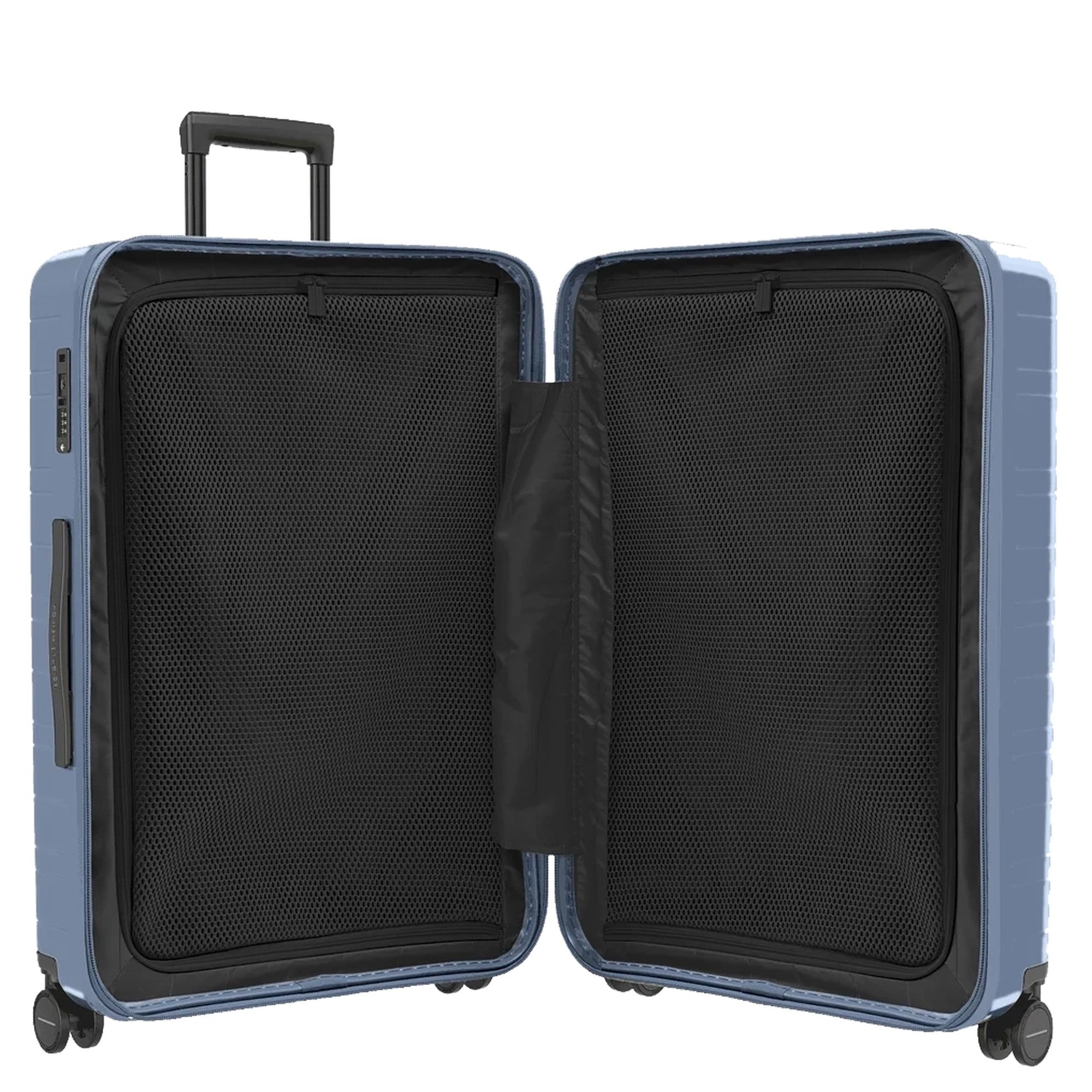 Le Horizn Studios H7 établit de nouvelles normes en matière de qualité et de respect de l’environnement. La coque rigide est fabriquée à partir de polycarbonate de haute qualité, en partie recyclé, et la production des valises est réalisée à 99 % sans déchets. Voyagez avec style sans compromis !