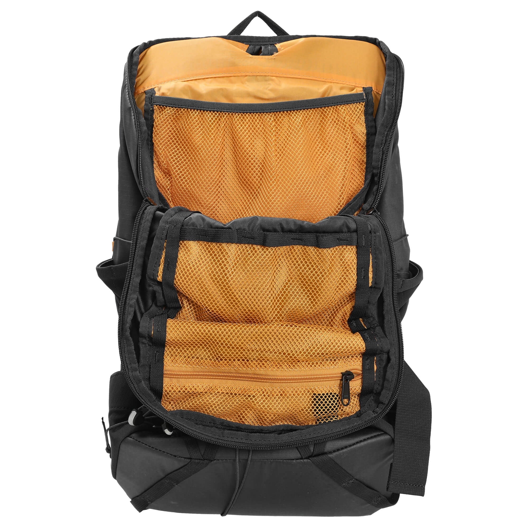 À l'intérieur du sac à dos, tu trouveras quatre poches en mesh et une poche zippée, ainsi que deux poches latérales, qui t'aideront à organiser ton équipement de manière optimale. Un compartiment intégré pour un système d'hydratation garantit que tu restes toujours hydraté pendant tes activités. La sortie centrale au dos permet de fixer le tuyau d'hydratation soit à la sangle d'épaule droite, soit à la sangle d'épaule gauche.