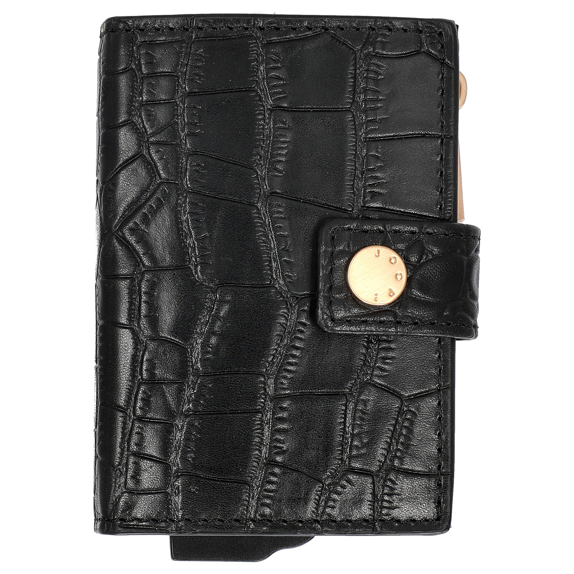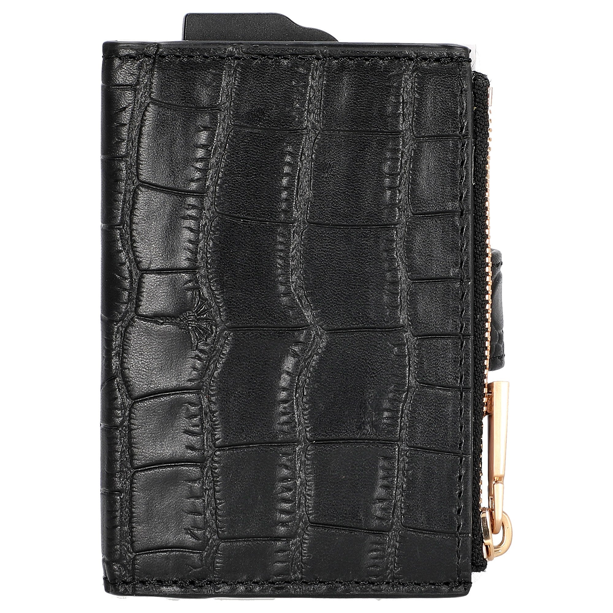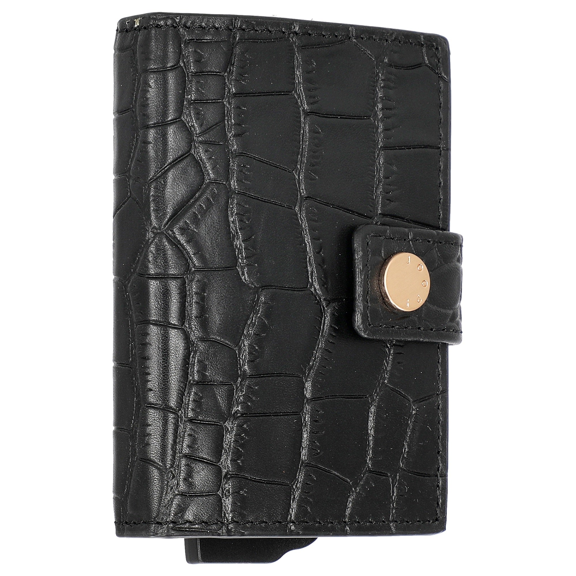 L'étui à cartes de crédit Joop Coccodrillo C-Four en élégant noir se distingue par son format compact de 10,5 cm et son design de qualité avec des ferrures dorées.