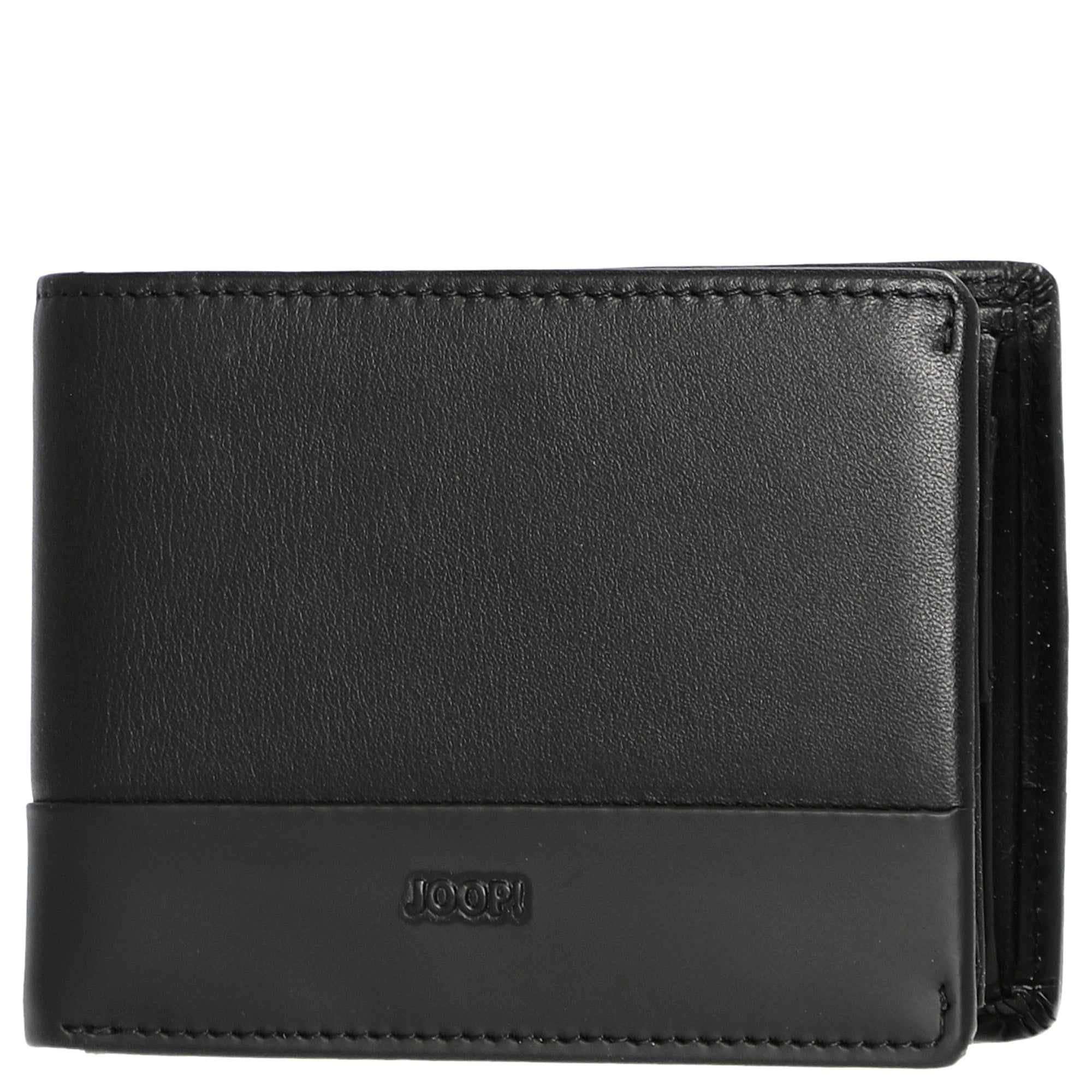 Diese elegante Geldbörse von Joop präsentiert sich in klassischem schwarzem Leder und besticht durch ihr praktisches Ausklappformat, das schnellen Zugriff auf alle Inhalte ermöglicht.