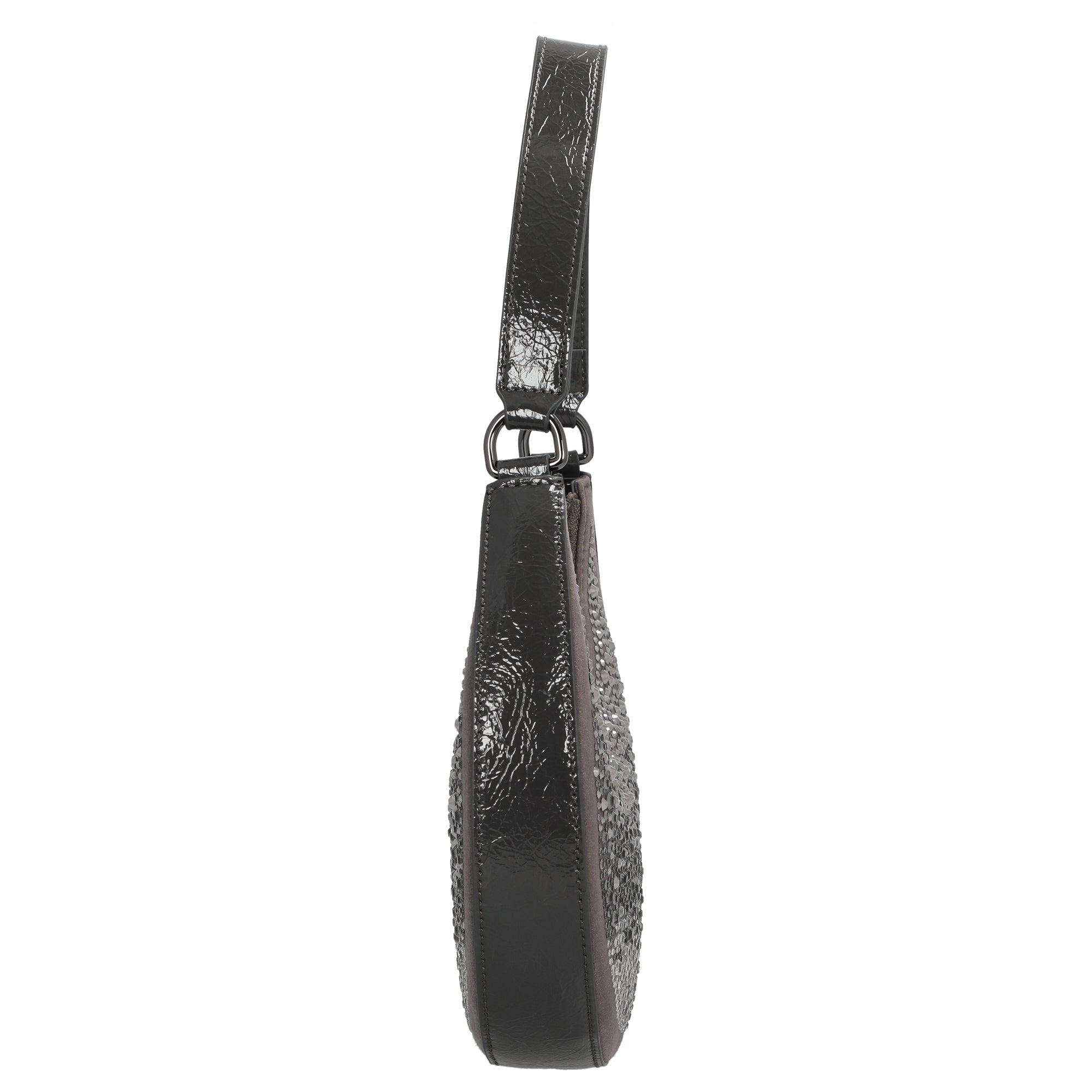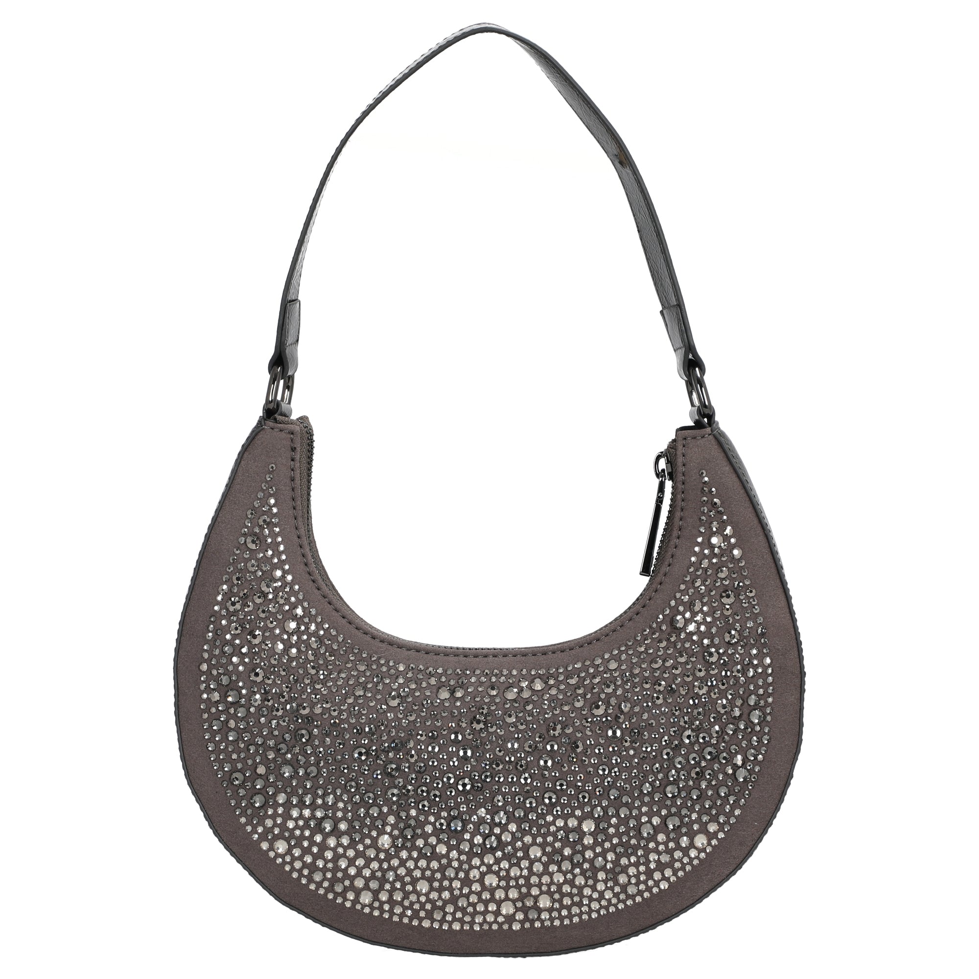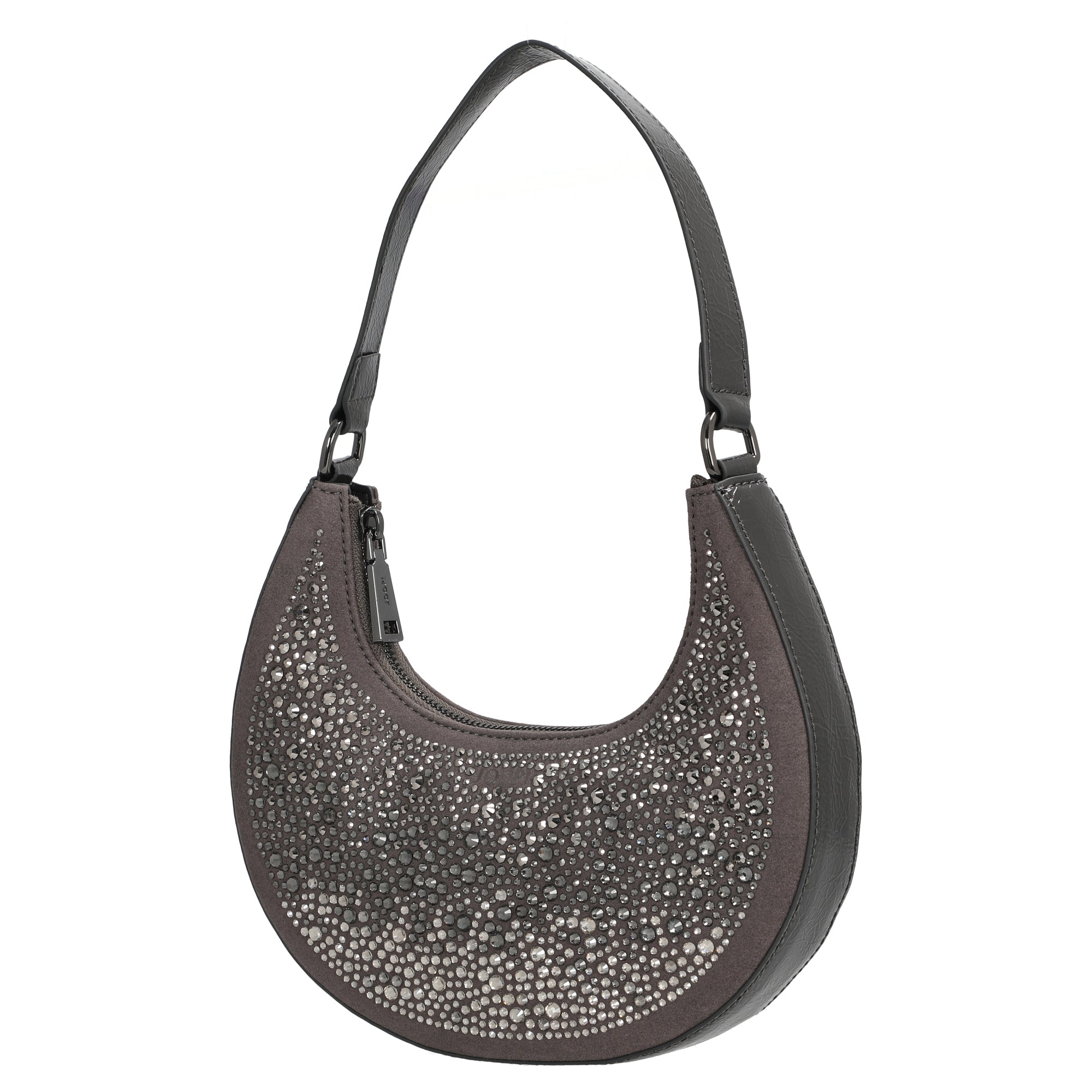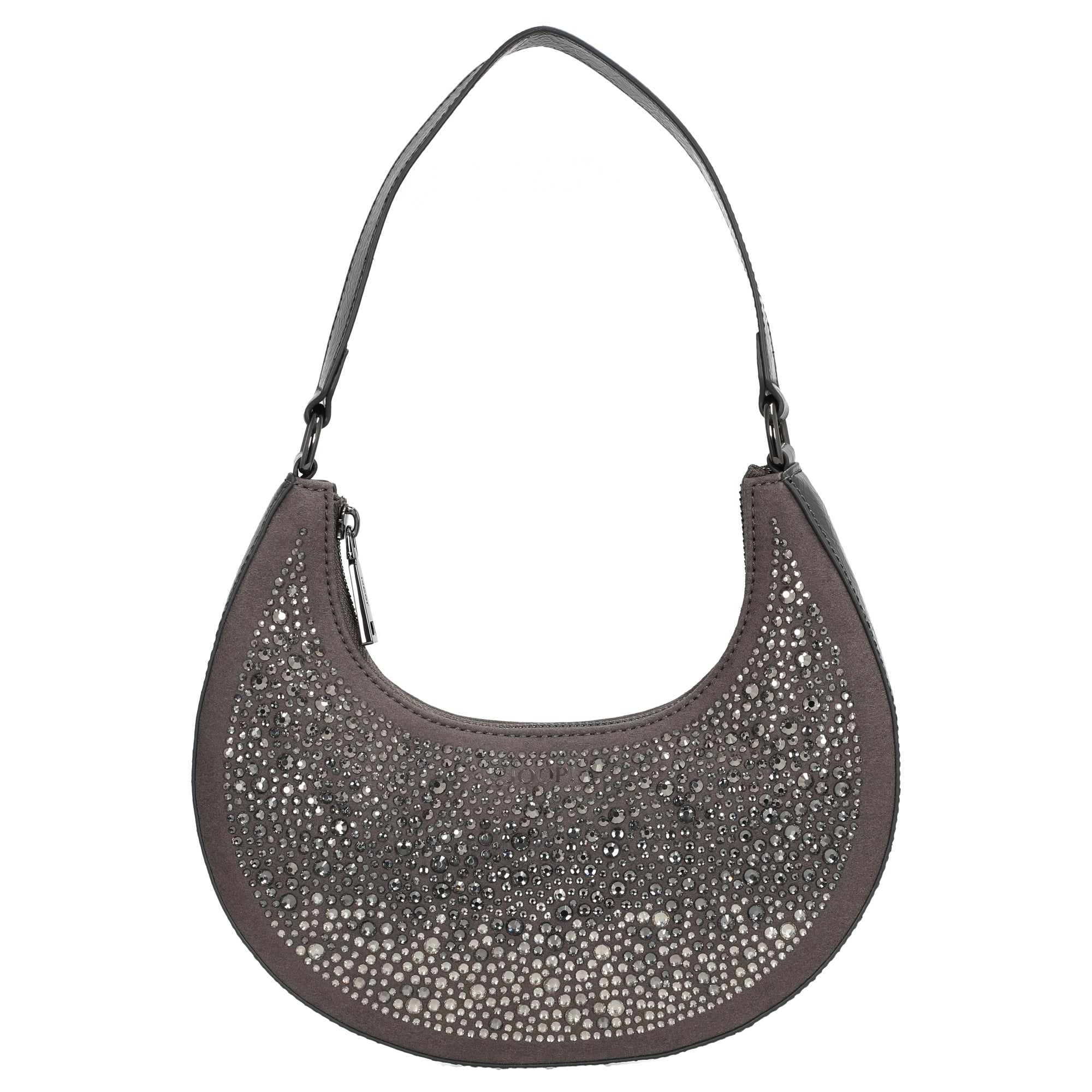 Die Joop Women Gioiello Rixa Schultertasche in elegantem Gunmetal-Grau setzt modische Akzente mit funkelnden Ziersteinen auf der Vorderseite und einer geschwungenen, femininen Form. Diese Umhängetasche vereint stilvolles Design mit praktischer Alltagstauglichkeit.