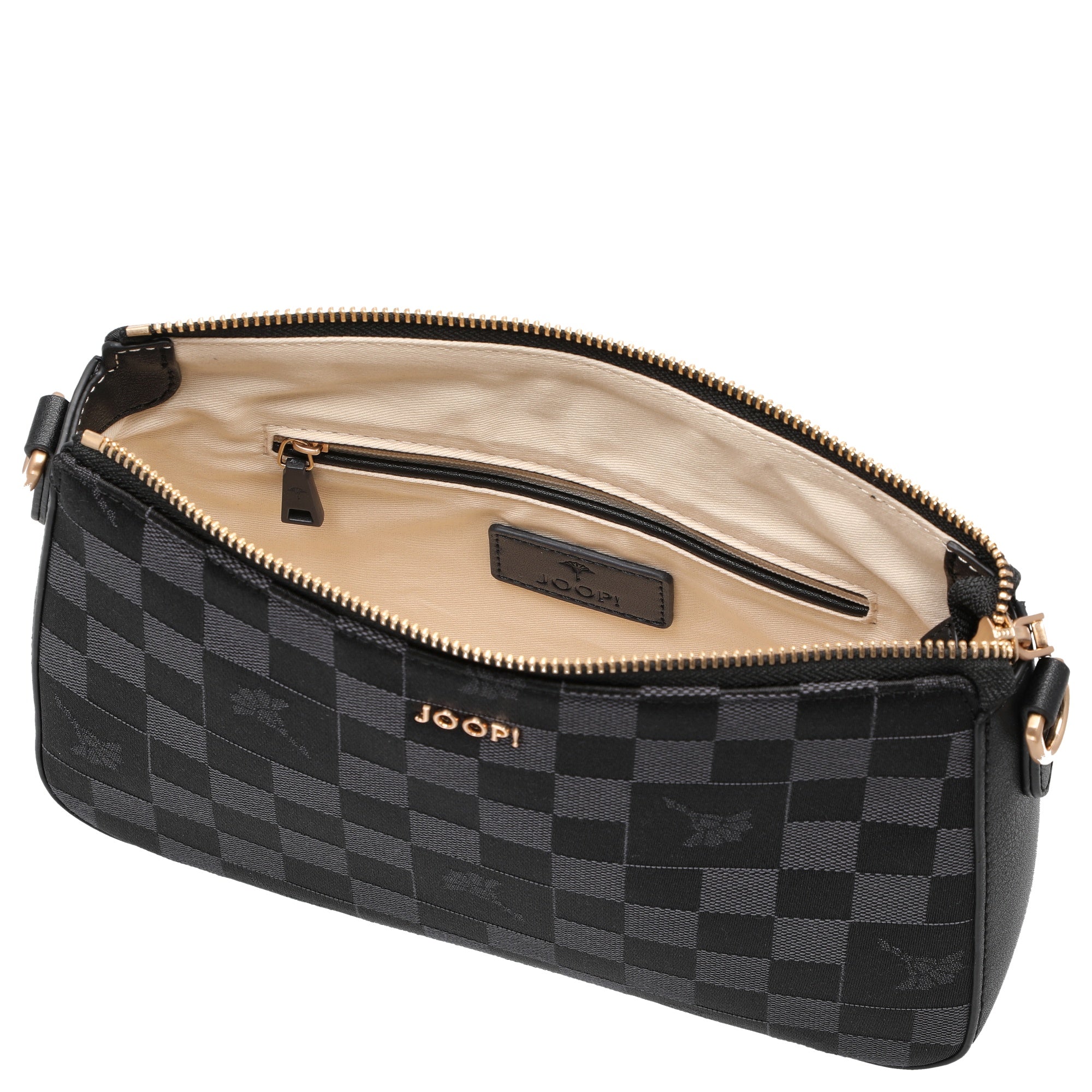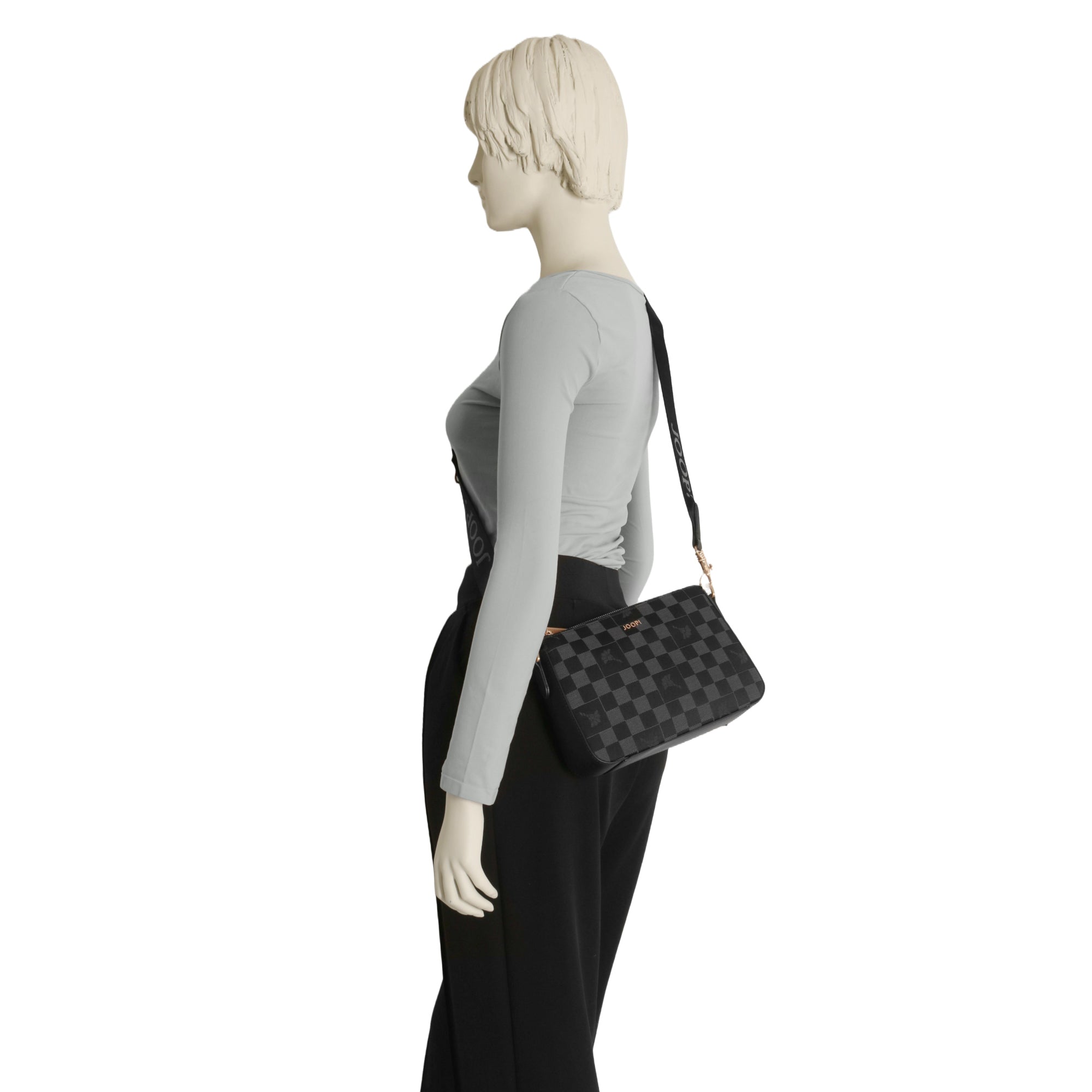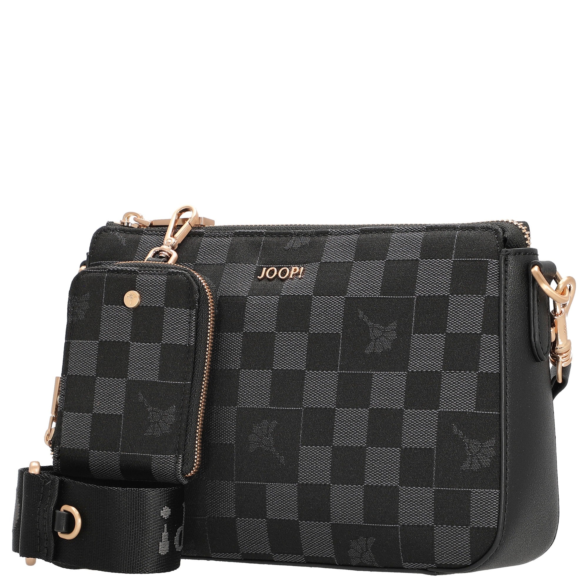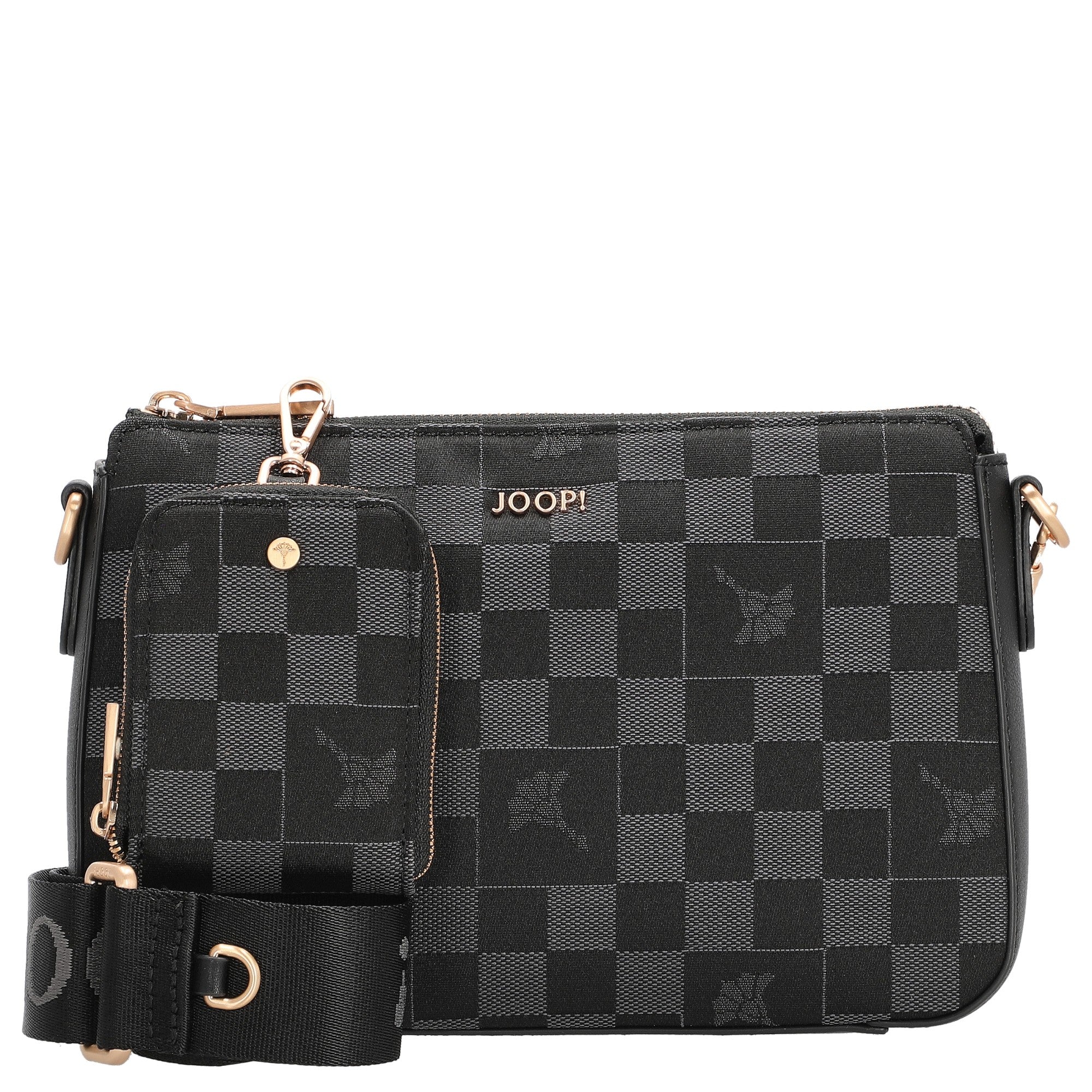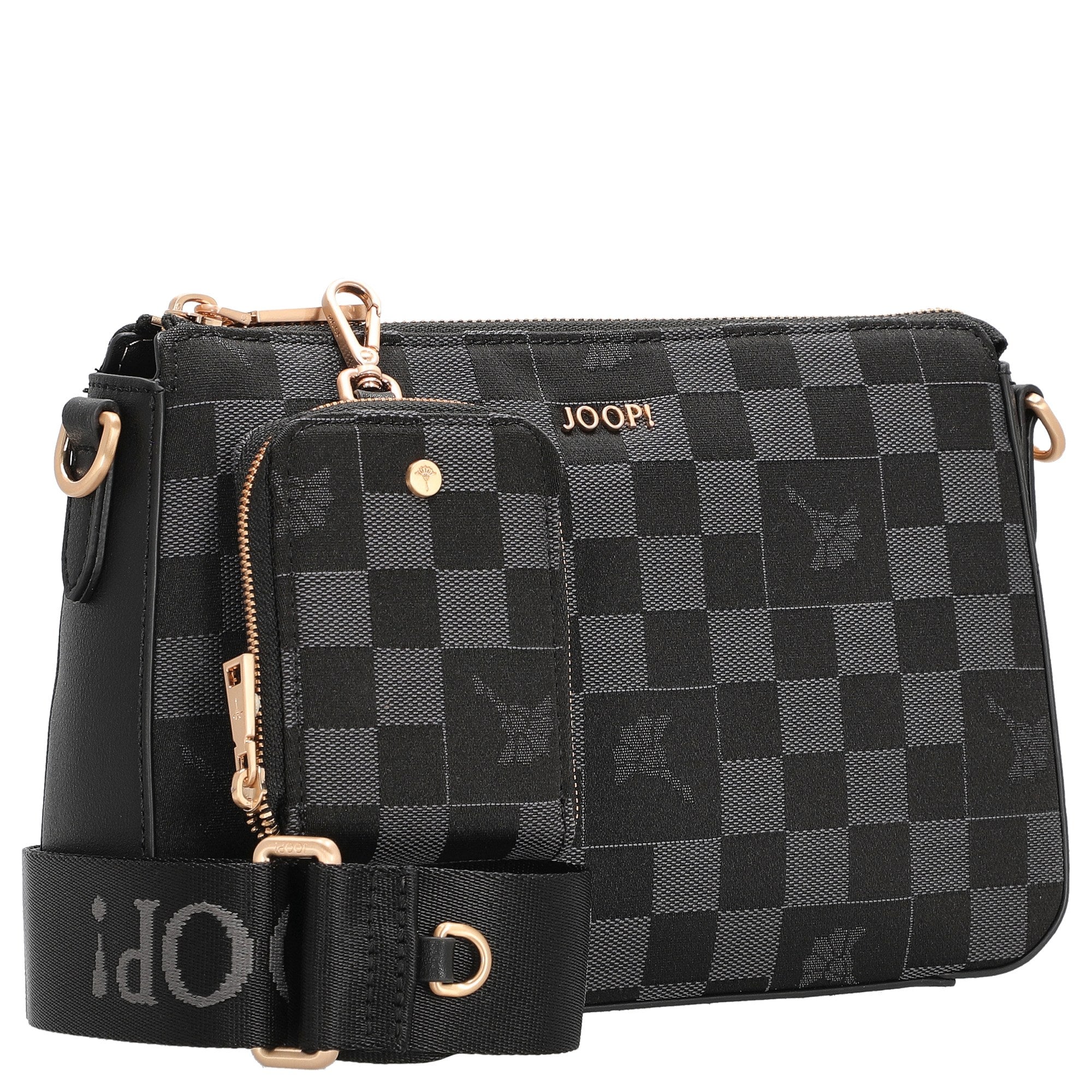Le sac bandoulière Joop Women Piazza Scacchi Jasmina en classique noir allie un design élégant à une praticité quotidienne. Le motif damier distinctif transforme ce sac compact en un accessoire de mode attrayant, facile à assortir.