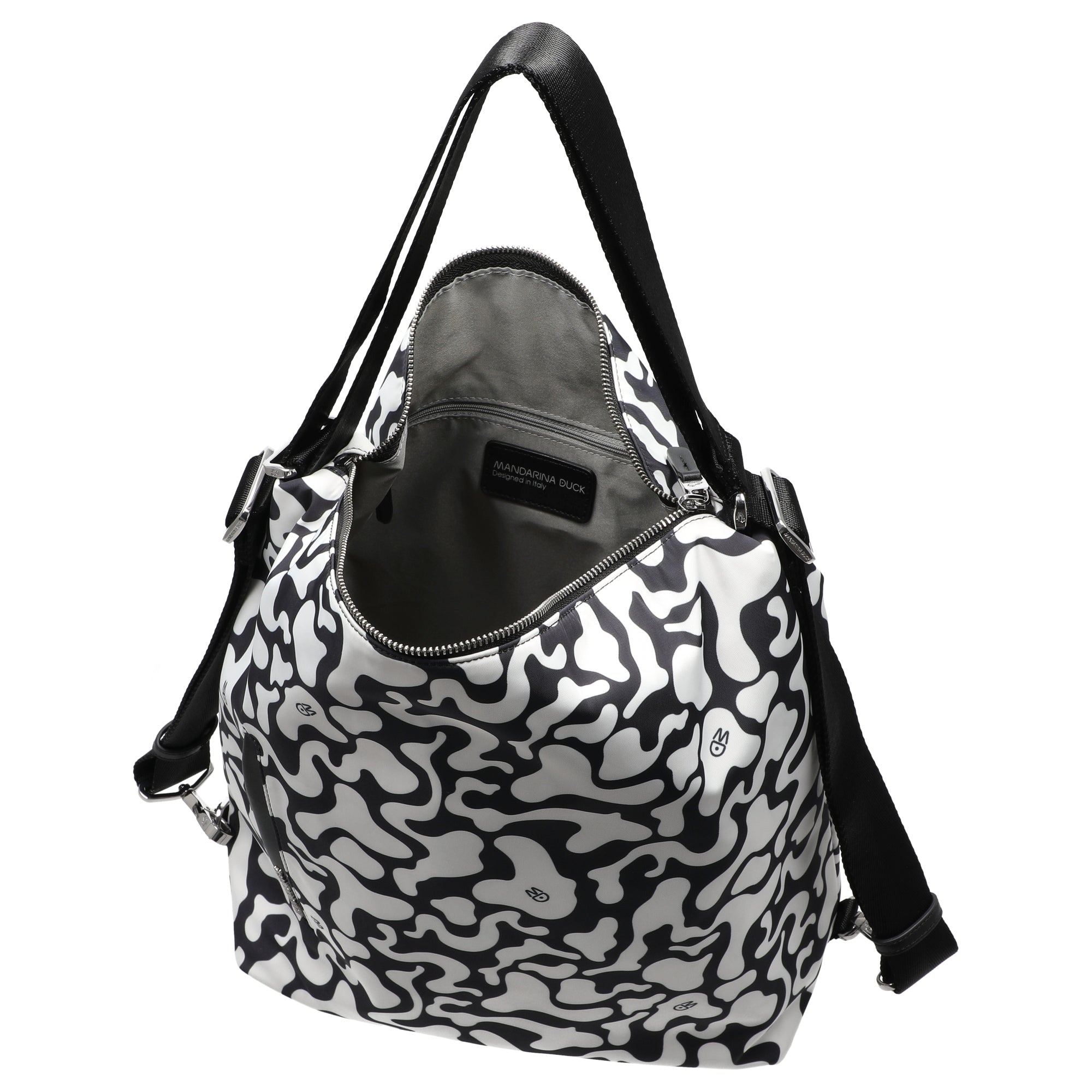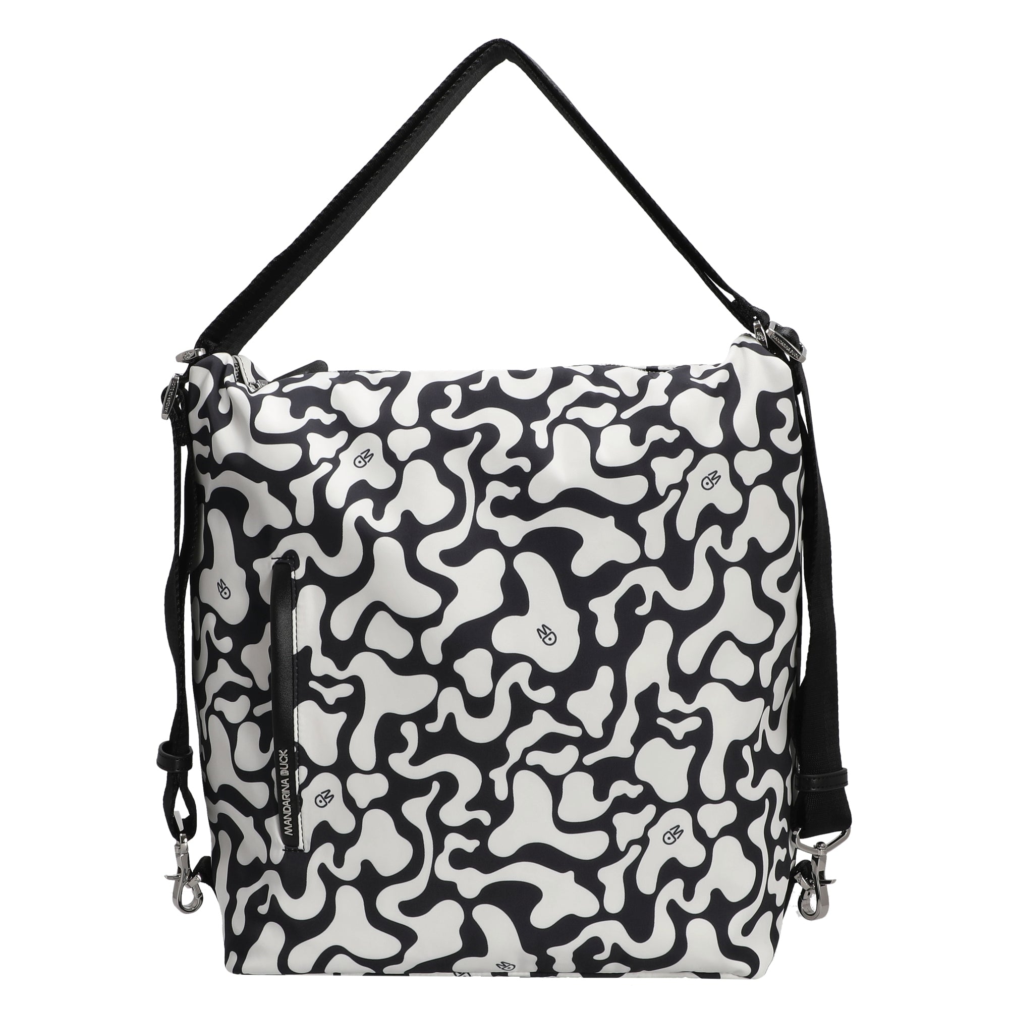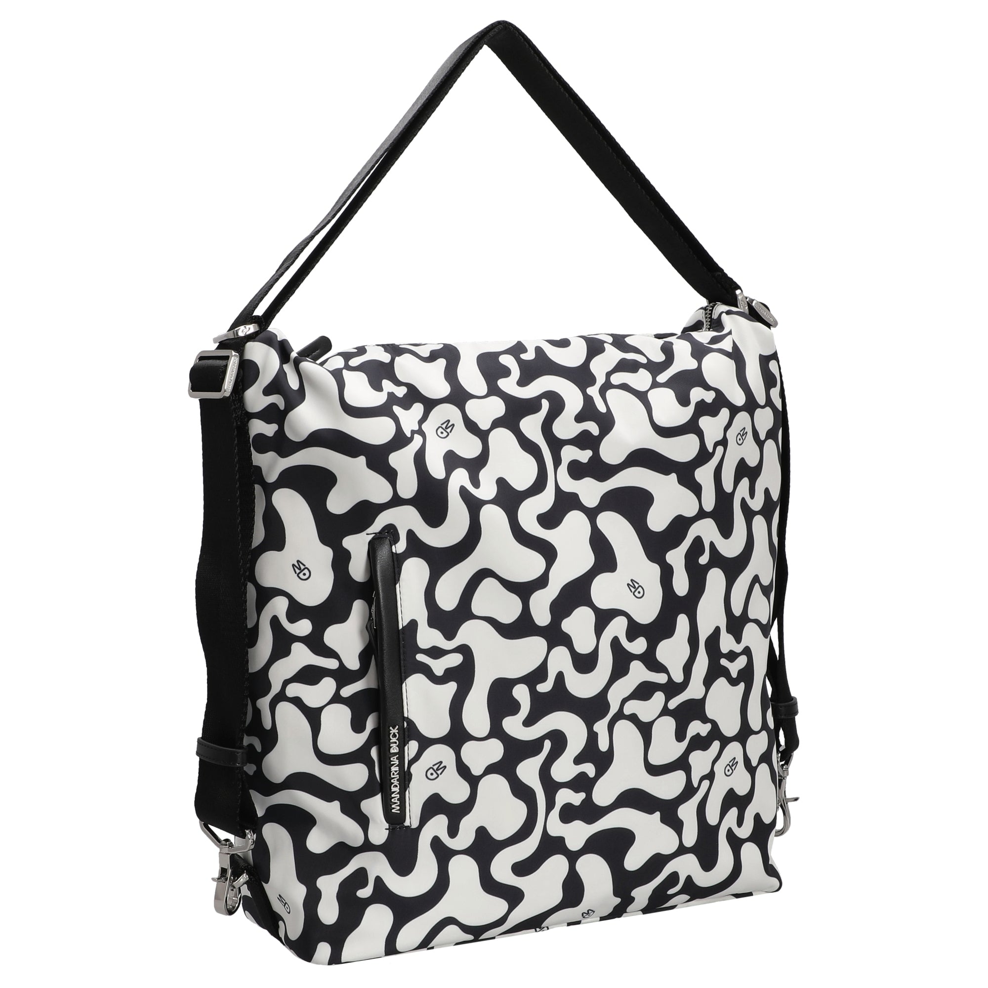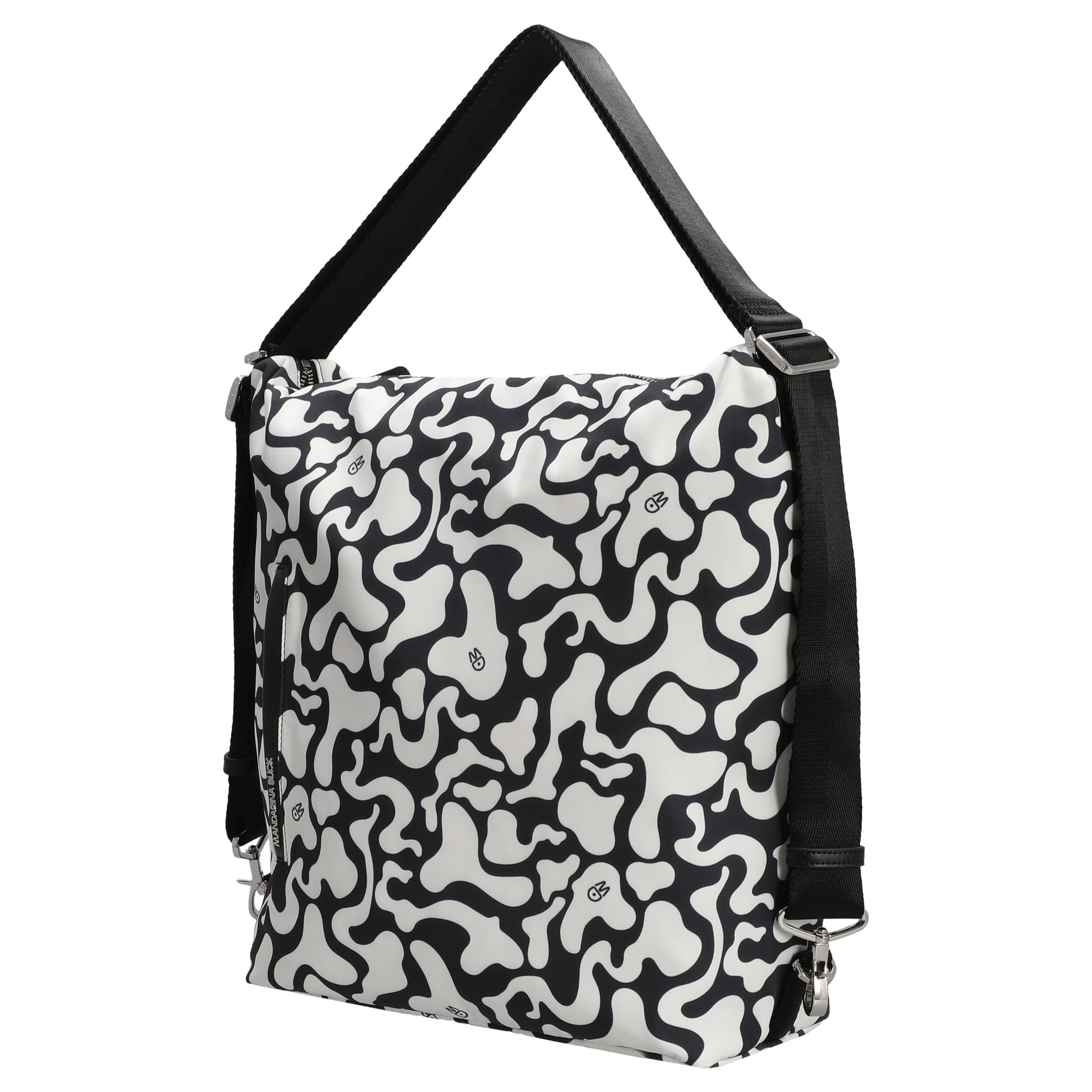 Mit der Mandarina Duck Hunter Moire Umhängetasche setzen modebewusste Frauen ein starkes Statement. Das ausgefallene schwarz-weiße Muster verleiht dem Design eine künstlerische Note und macht die Tasche zum Blickfang in jedem Alltag. Ob beim Stadtbummel oder im Büro – diese Tasche verbindet Funktionalität mit urbanem Chic.
