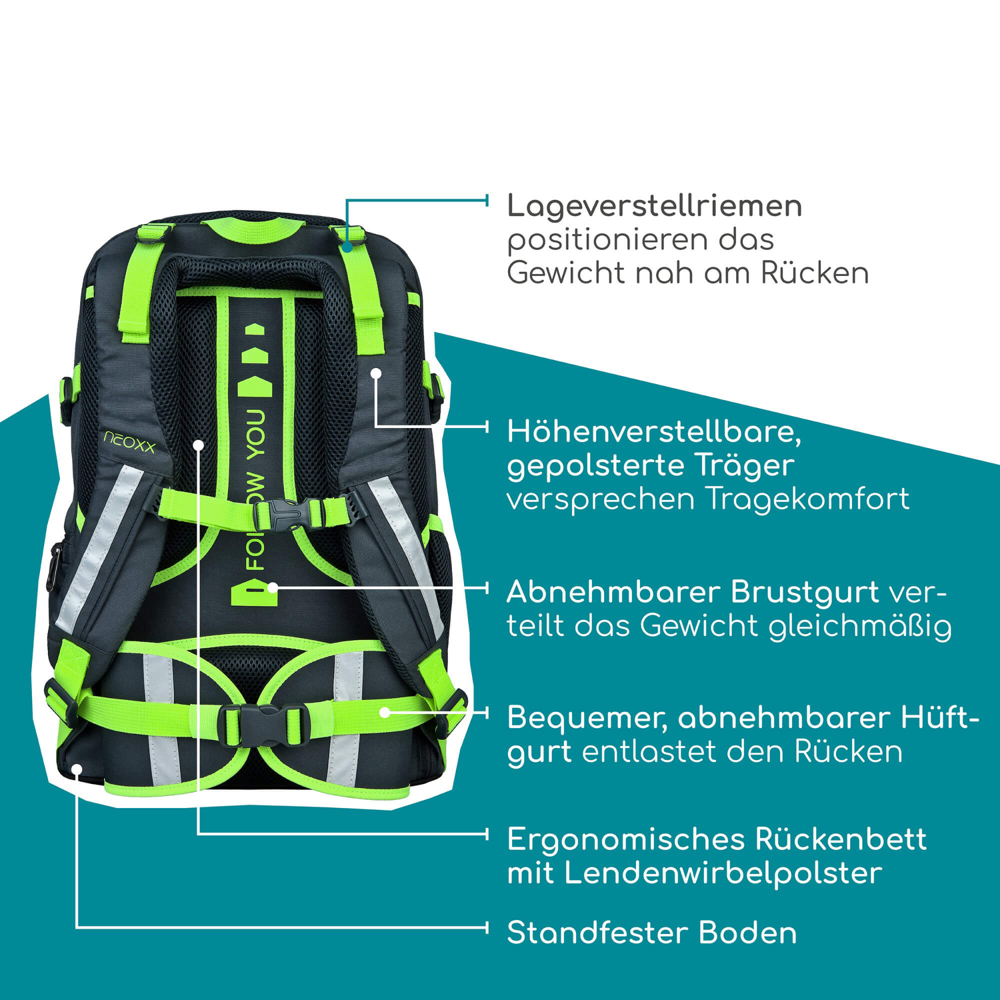 Découvrez le sac à dos scolaire Neoxx ACTIVE PRO en couleur BOOM! – la combinaison parfaite de style et de fonctionnalité pour les élèves à partir de la 5e classe. Ce sac à dos scolaire se distingue par un design réfléchi, à la fois à la mode et durable. Avec un système de dos ergonomique, il garantit un confort de port optimal, que ce soit sur le chemin de l'école ou lors d'activités de loisirs.