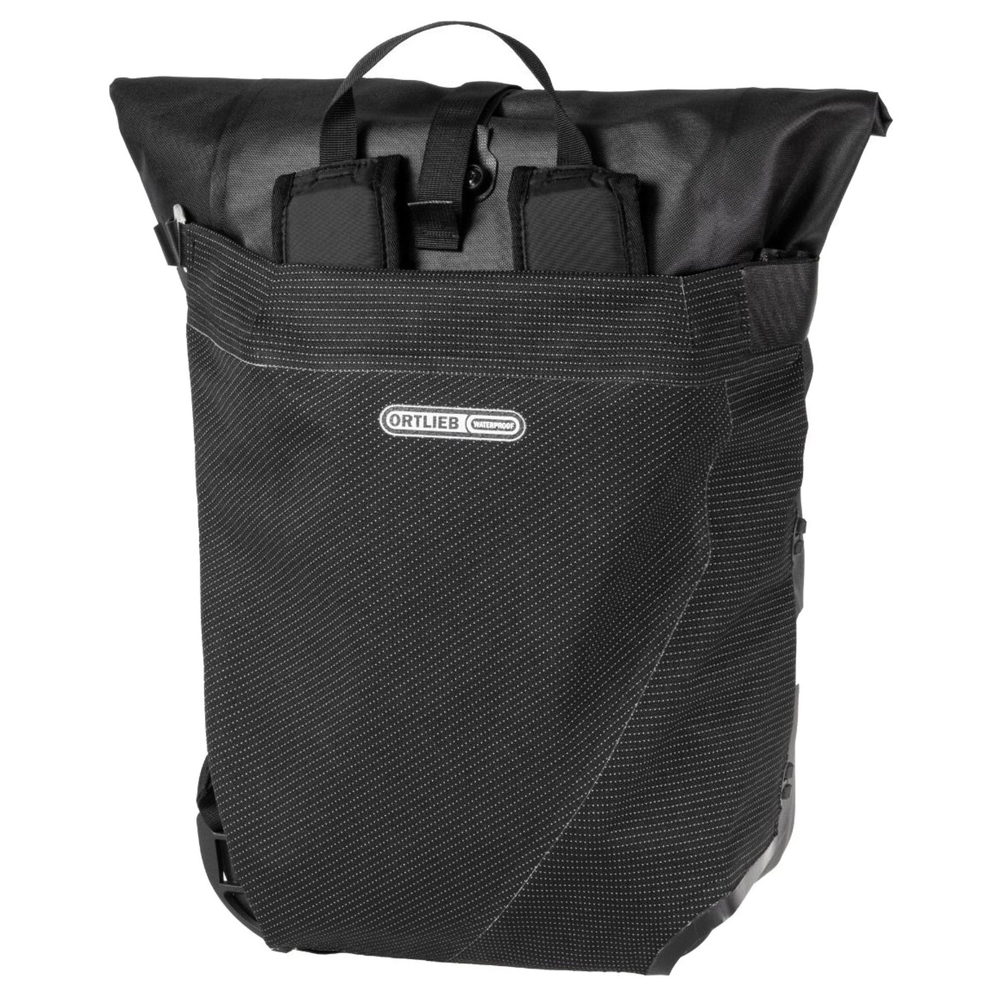 Avec la Ortlieb Flap High-Vis en noir avec éléments réfléchissants, vous êtes parfaitement équipé pour vos aventures – quel que soit le temps !