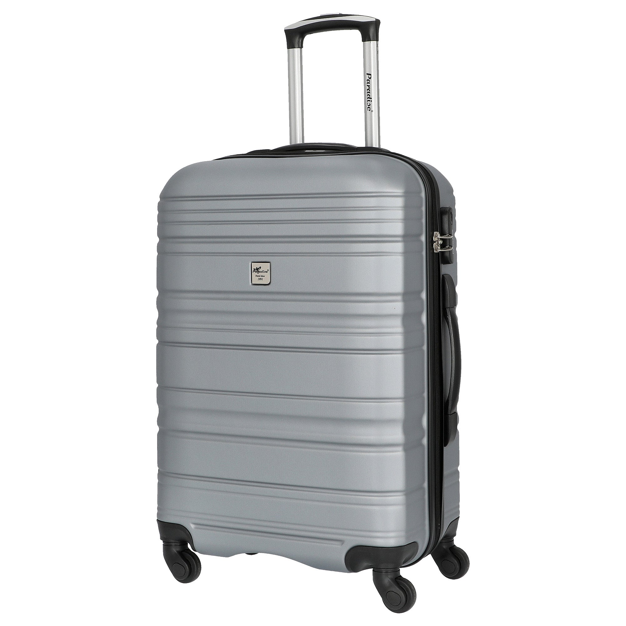 Découvrez le élégant Santiago Trolley L de CHECK.IN dans la couleur chic Argent. Cette valise allie design moderne et fonctionnalités pratiques et deviendra rapidement votre compagnon de voyage indispensable. Avec son extérieur attrayant et sa finition de haute qualité, ce trolley se distingue des autres et vous assure de toujours avoir fière allure, peu importe la destination.
