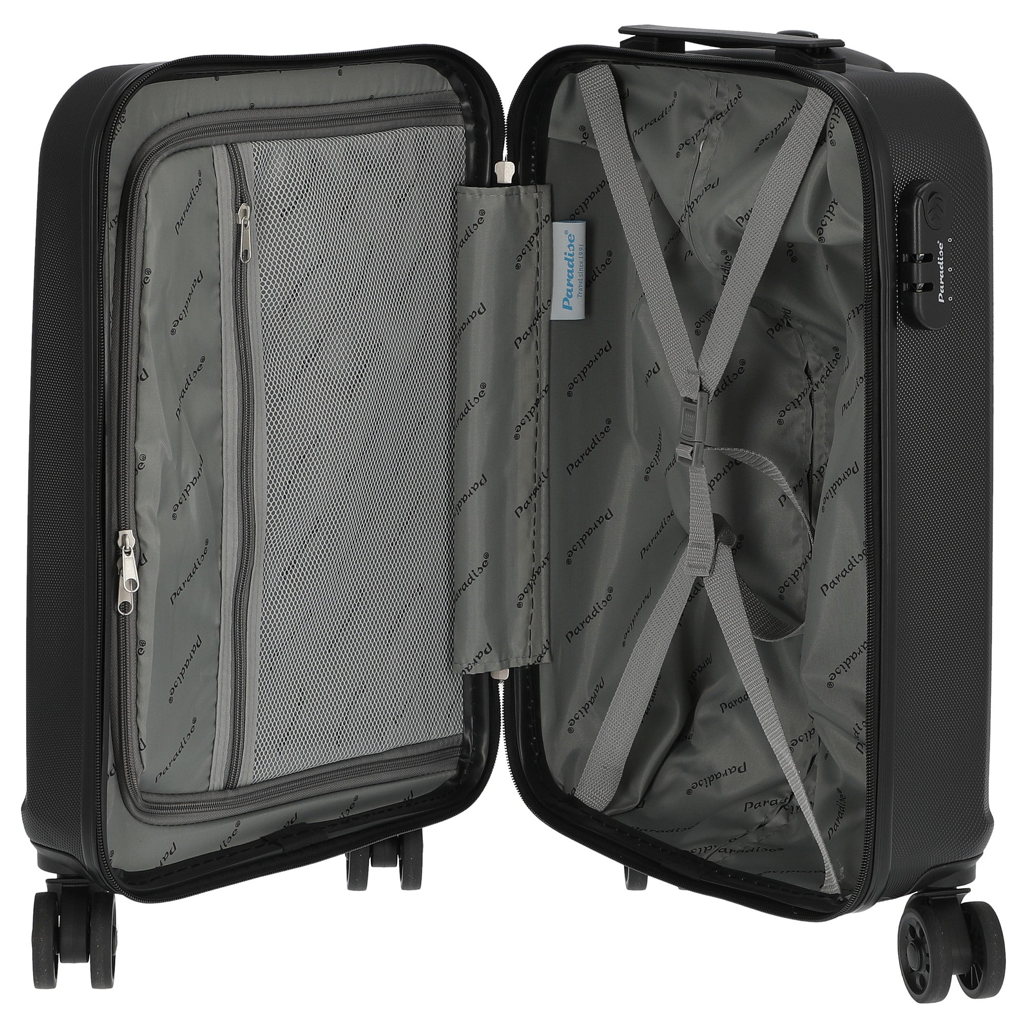 Découvrez le Paradise by CHECK.IN Havanna 2.0 en élégant Noir – le trolley parfait pour les voyageurs soucieux de leur style. Avec un poids de seulement 2,70 kilogrammes, ce trolley compact pour cabine est non seulement léger, mais aussi extrêmement pratique pour vos voyages. Ses dimensions pratiques en font le compagnon idéal pour les bagages à main.