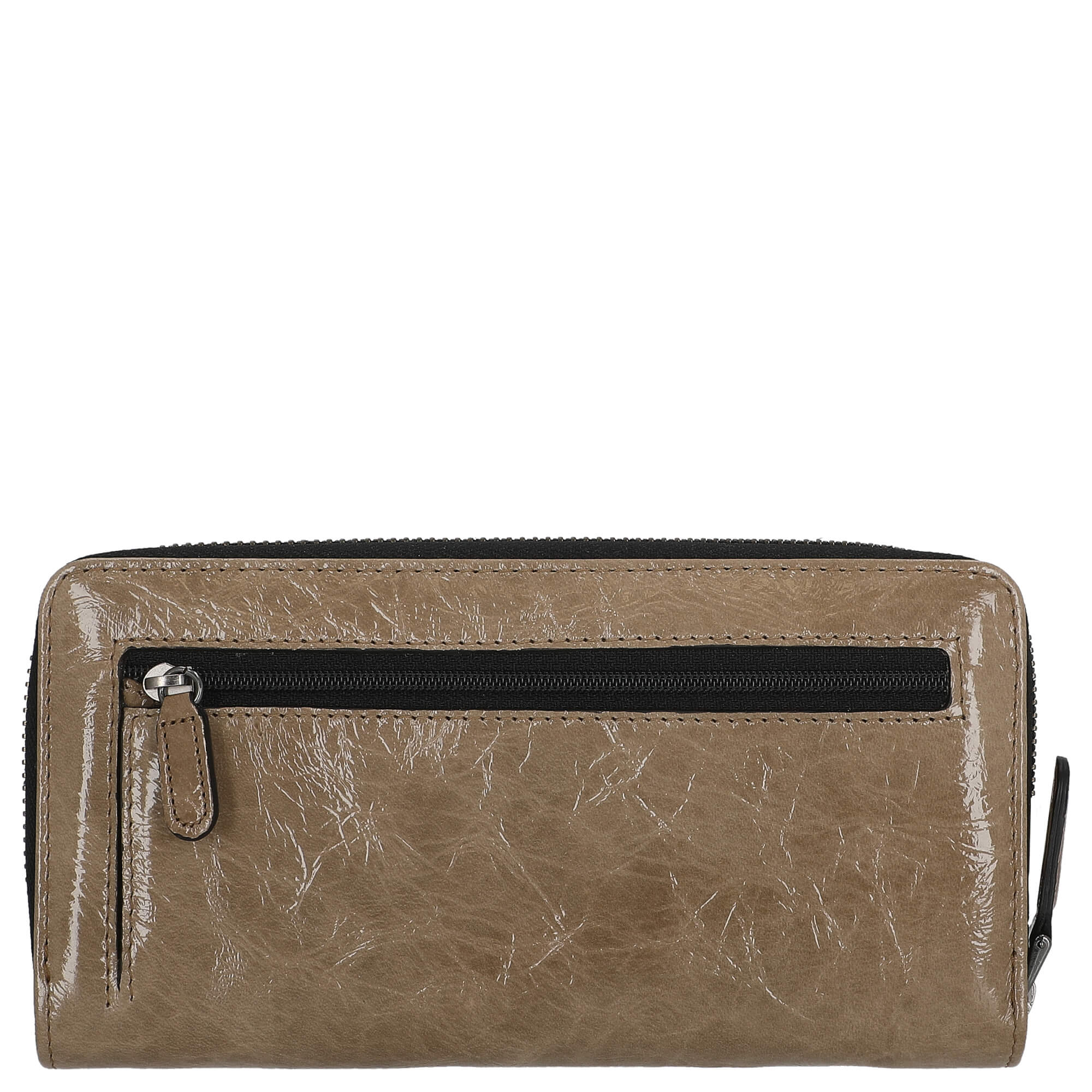 Le design extérieur du portefeuille se distingue par son aspect laqué attrayant, qui assure non seulement un look élégant, mais est également facile à entretenir et durable. La fermeture éclair tout autour garantit que vos objets de valeur sont toujours en sécurité.