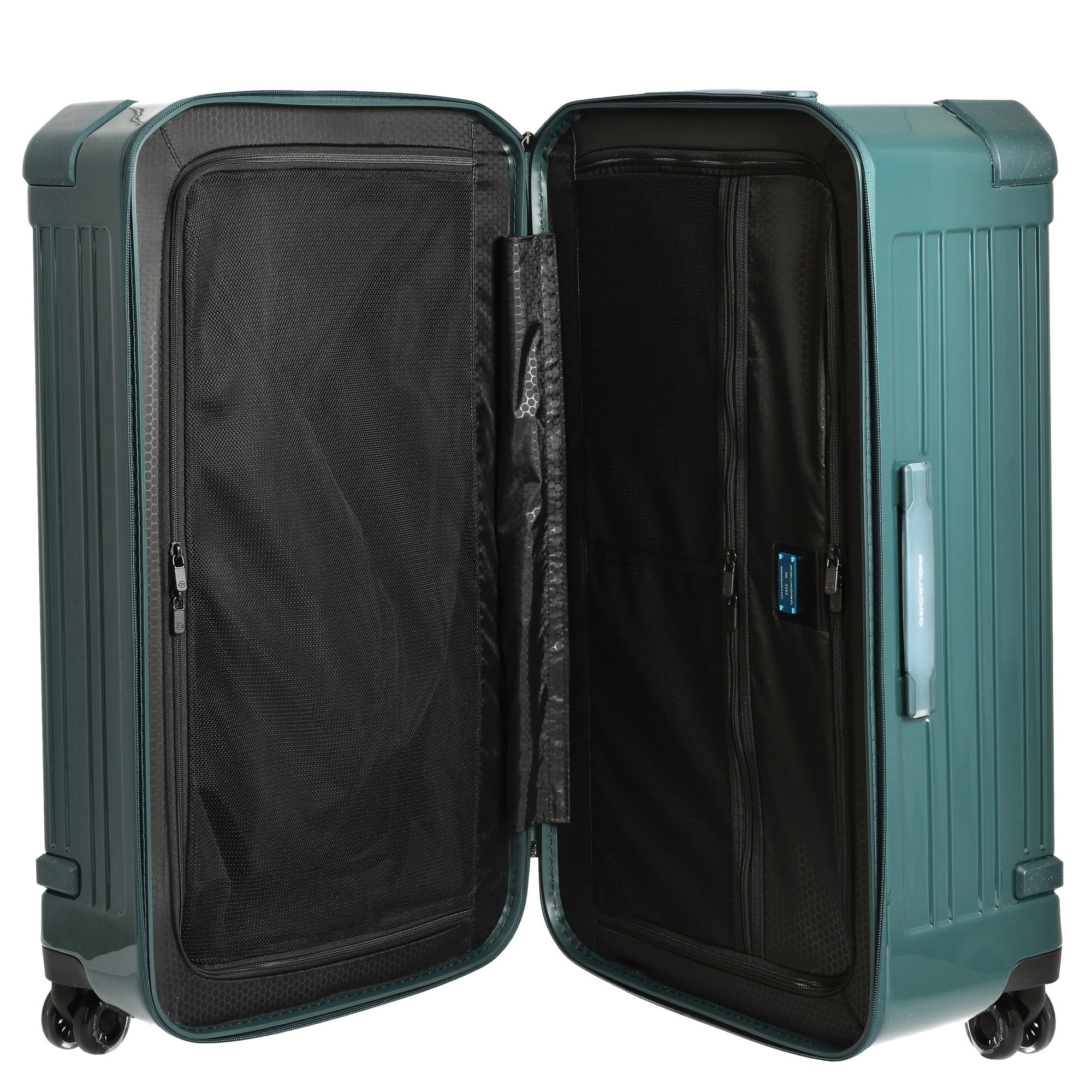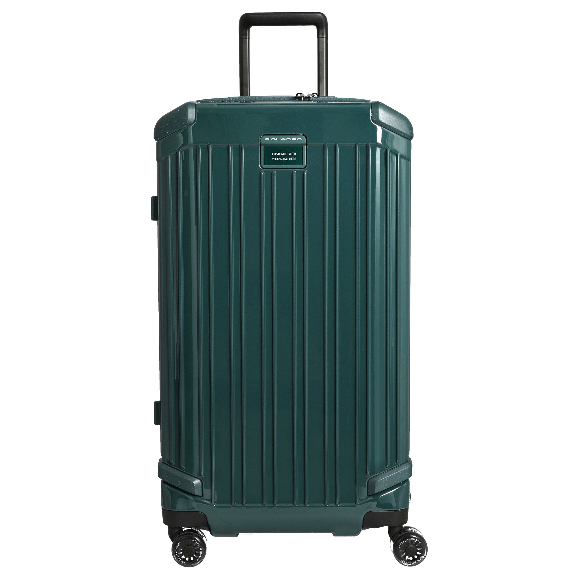 Ein robuster 4-Rollen-Trolley, der mit seiner widerstandsfähigen Hartschale aus Polycarbonat ideal für ausgedehnte Reisen geeignet ist. Die elegante grüne Farbe unterstreicht den funktionalen Charakter dieses Modells von Piquadro.