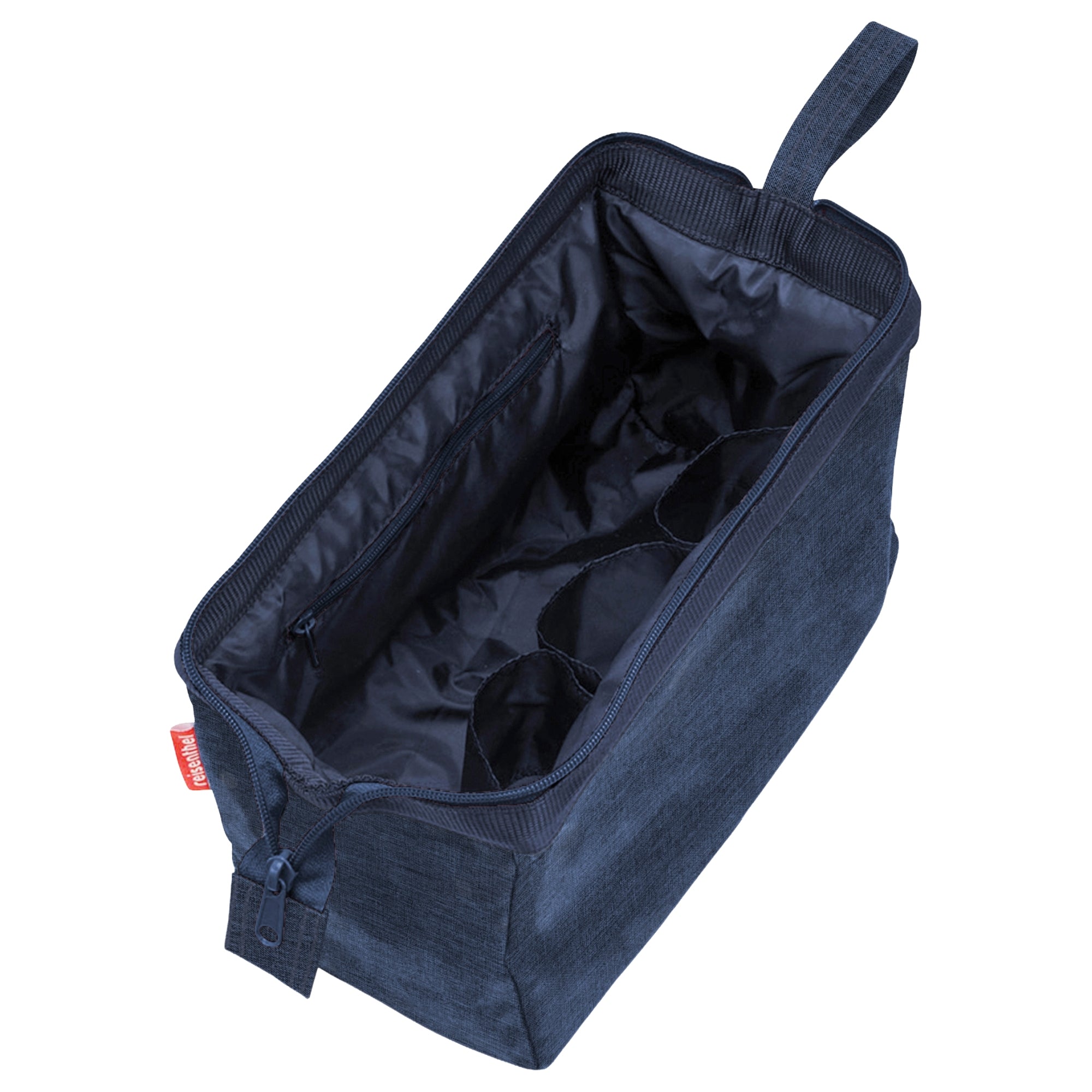 - Trois boucles sur la paroi intérieure sont idéales pour les flacons, les brosses à raser ou les déodorants et maintiennent vos ustensiles en sécurité à leur place.