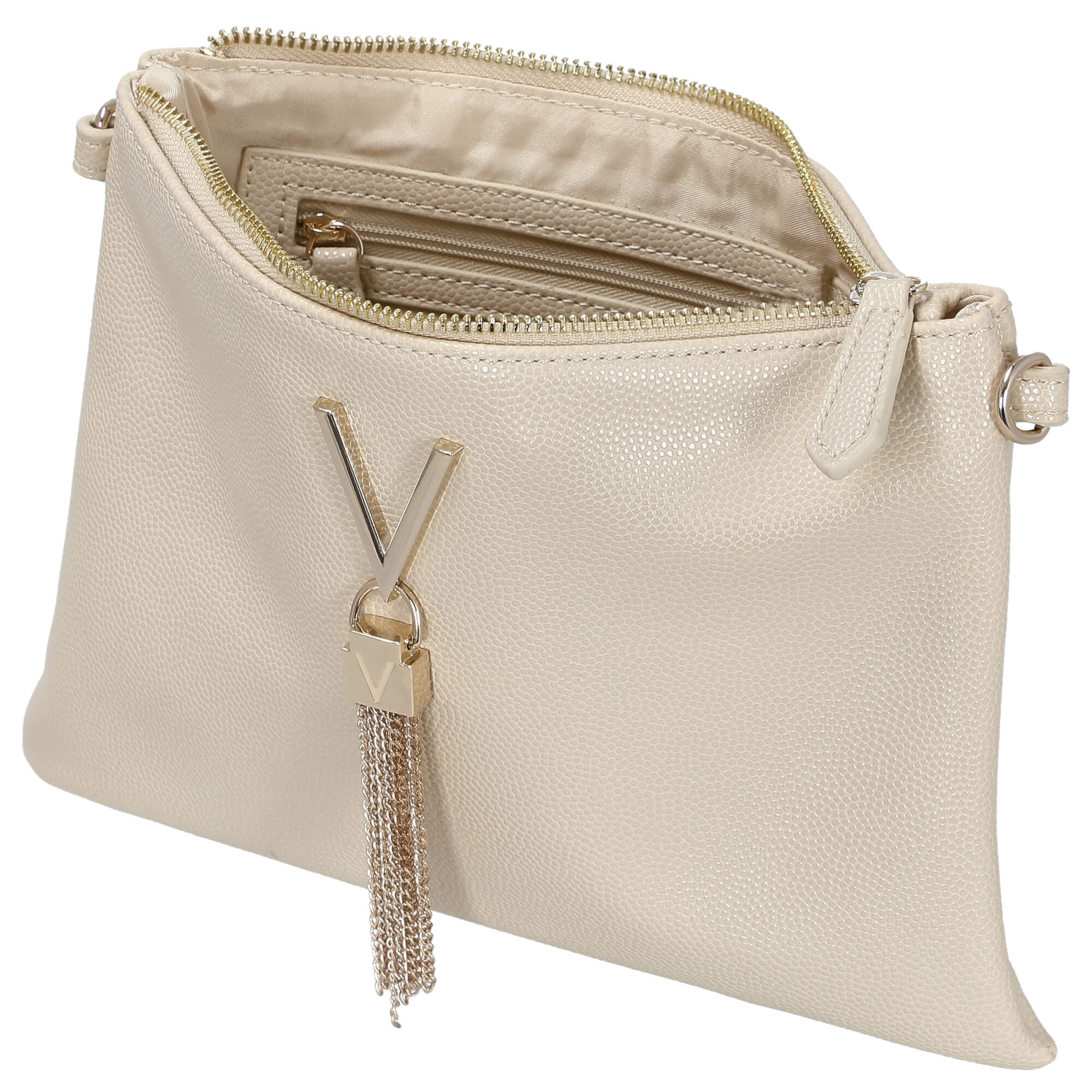 Découvrez le sac bandoulière beige de la collection exclusive Divina de Valentino Bags. Ce sac allie design élégant et fonctionnalité pratique, ce qui en fait le compagnon parfait pour toutes les occasions.