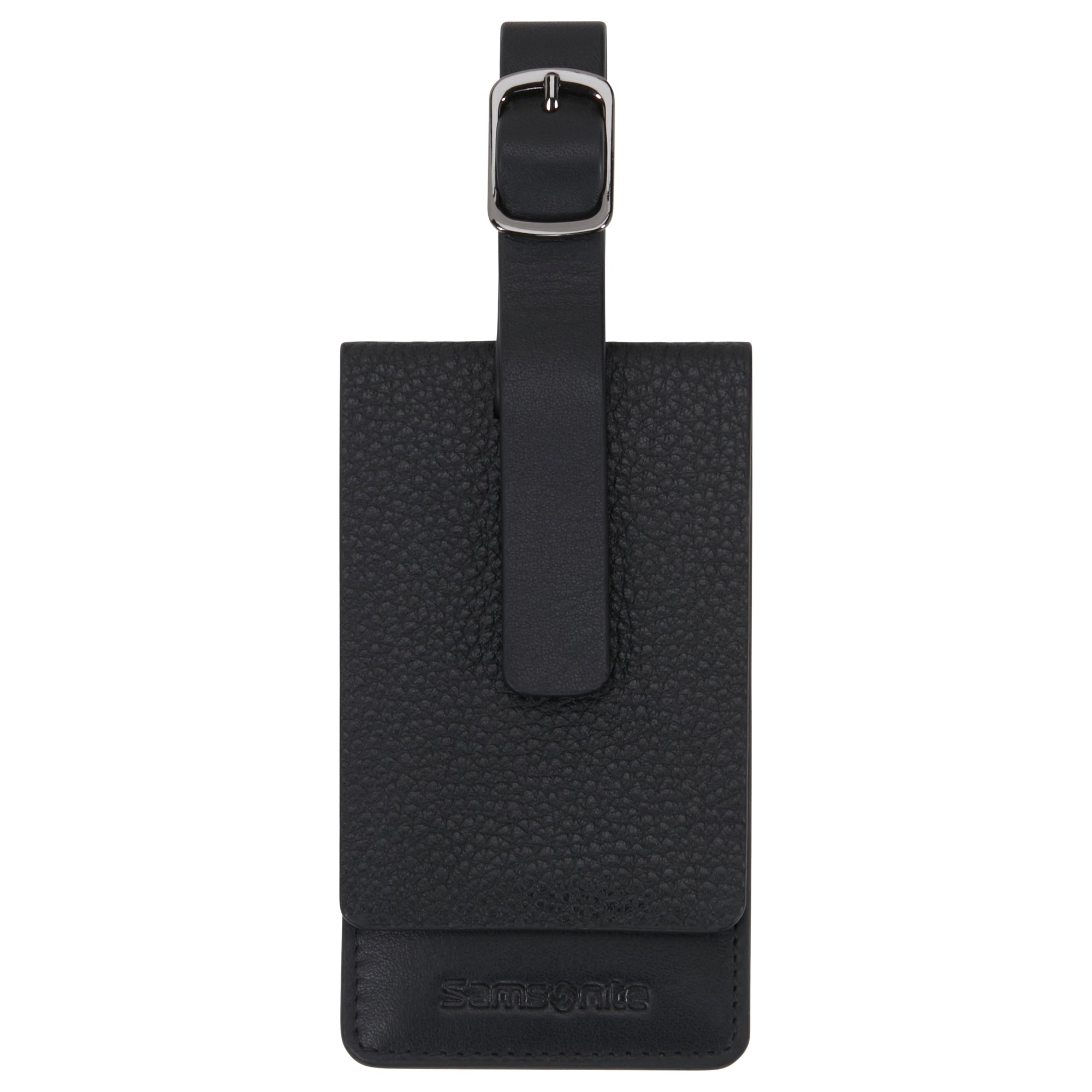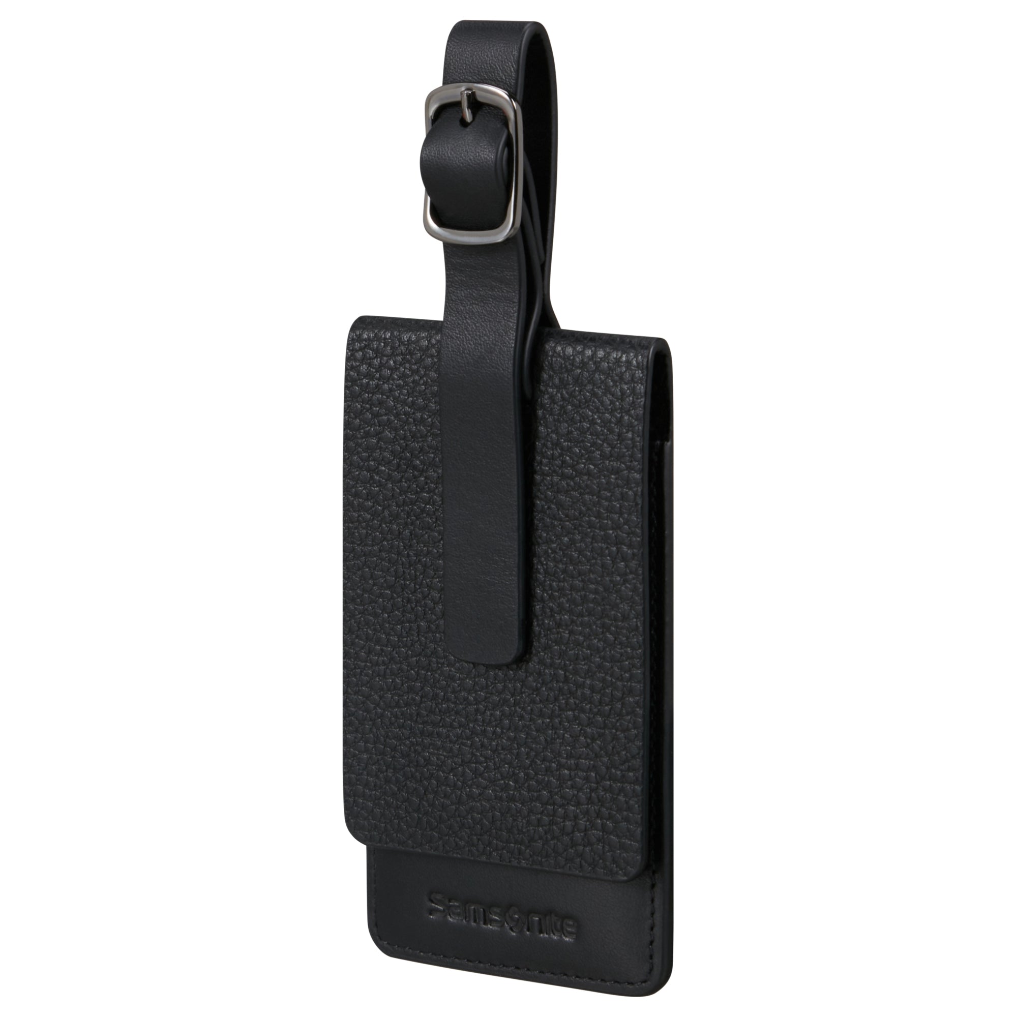 Le Samsonite Ta Revolution Leather Tag en noir est l'étiquette de bagage idéale pour les voyageurs soucieux de leur style qui souhaitent identifier leur bagage de manière sécurisée et personnalisée.