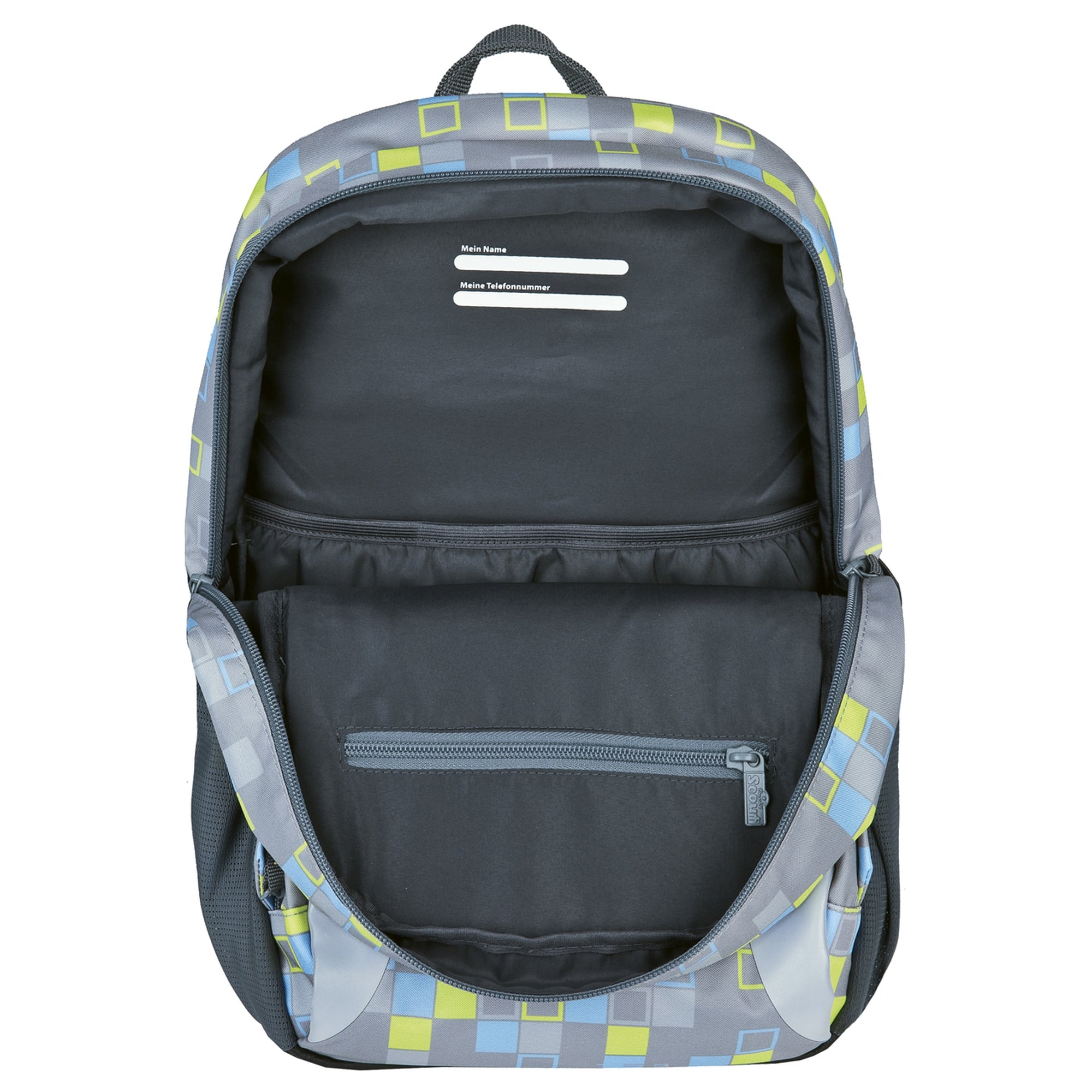 - Grand compartiment principal – idéal pour les documents format DIN A4 et le matériel scolaire
